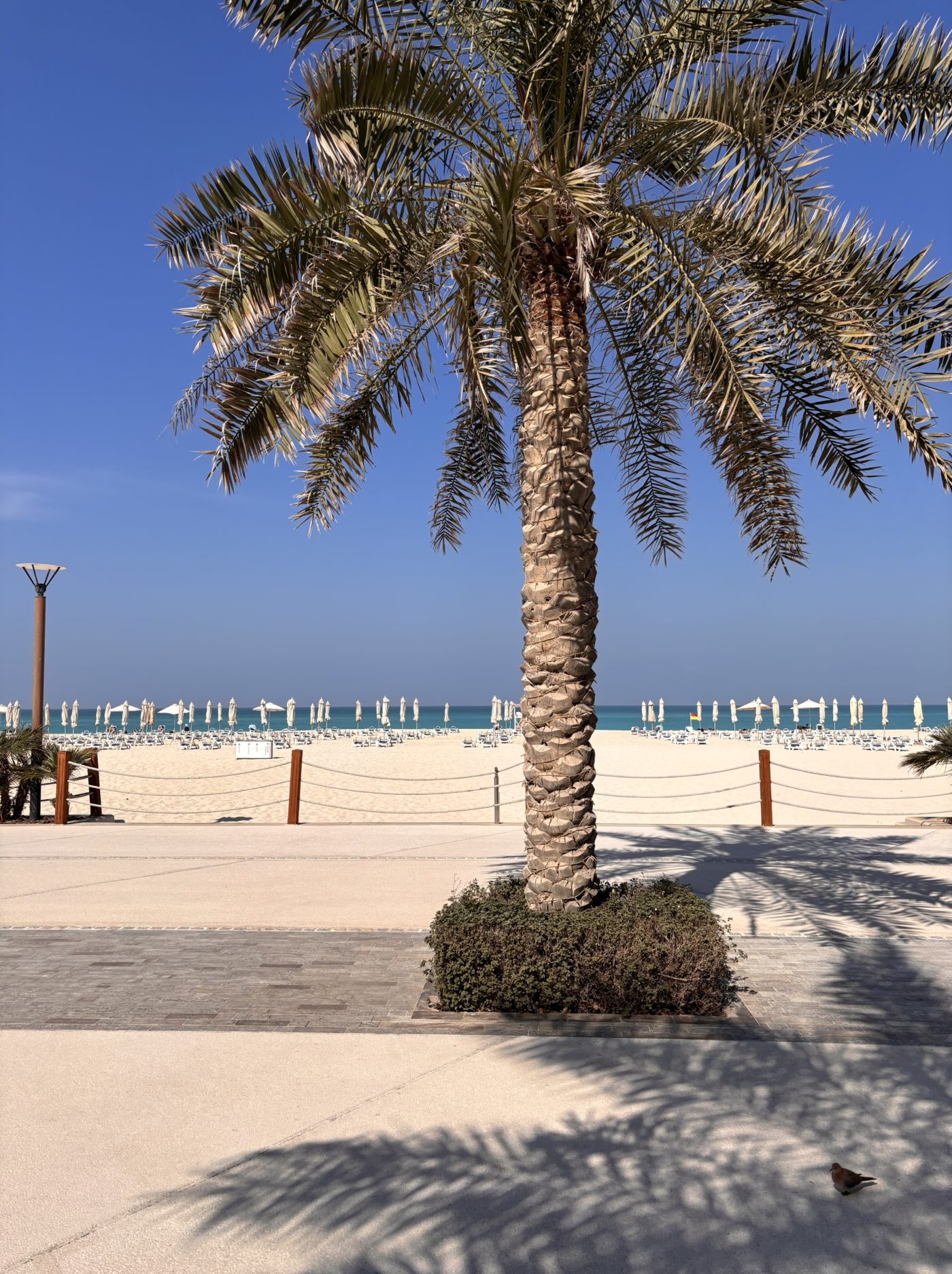 Ce qui frappe, dès de notre arrivée à l’aéroport d’Abu Dhabi, c’est cet impressionnant terminal rutilant, ouvert en novembre dernier, d’une capacité de 45 millions de passagers… L’effet saisissant du monumental est bien au rendez-vous. On constate aussitôt qu’ici propreté rime avec sécurité. On file vers notre luxueux hôtel et confortable pied à terre qui sera le St-Régis de Marriott retenu en raison de son emplacement idéal sur la périmètre de la Corniche. Pour notre première matinée, on se dirige vers la Mosquée Sheikh Zayed. Il fait 23° un 22 janvier et on est happé par la beauté sidérante de ses 1 096 colonnes incrustées d’améthyste et de jaspe, ses 82 dômes de marbre blanc de Macédoine, ses bassins réfléchissants et ses lustres Swarovski plaqués or. Cette mosquée (l’une des plus grandes du monde) détient également, un record du monde Guinness pour le plus grand tapis tissé à la main. Après cette découverte de choix, on prend la direction de l’île de Saadiyat où se trouve le Louvre Abu Dhabi, chef-d’oeuvre de Jean Nouvel inauguré le 8 novembre 2017.