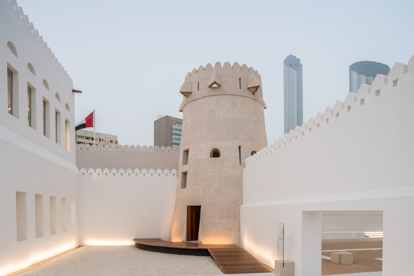 On parcourt les 9200 m² de galeries qui font de ce bâtiment (premier musée universel du monde arabe) une symphonie de lumière, de béton et d’eau. Le ciel communie avec les sables et les eaux du golfe persique, c’est magique. A la nuit tombée, le spectacle de drones enveloppant le dôme, dans le cadre de l’initiative d’art public de Manar Abu Dhabi, est de toute beauté. A noté que ce symbole de la réussite des Emirats Arabes Unis n’est qu’un préambule avec l’arrivée, dans les deux ans à venir, d’une série de musées « guest stars » aux chantiers pharaoniques : le Guggenheim Abu Dhabi signé par Frank Gehry, le Musée d’Histoire Naturelle mais aussi, à proximité, le Zayed National Museum dessiné par Norman Foster qui relatera l’histoire de feu Sheikh Zayed bin Sultan Al Nahyan (1918-2004), père fondateur des Émirats Arabes Unis, et célébrera ses réalisations. Pour notre deuxième jour, on remonte le temps avec la visite de l’incontournable Qasr Al Hosn. Autrefois résidence de la famille régnante et du Conseil consultatif national, elle a été transformée en musée en 2018 après une décennie de restauration méticuleuse.