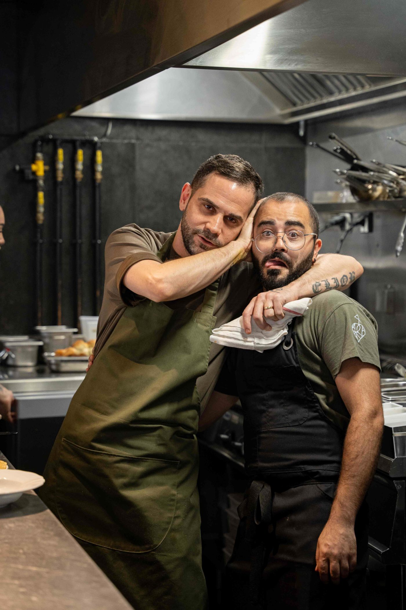 Du coté de Montmartre, les fondateurs (Elior, Eden, David et Shlomit) de cette adresse-pépite élaborent une expérience gastronomique tournée vers le partage. Les quatre amis, qui se sont rencontrés au Balagan, reçoivent le convive dans une élégante salle de 50 couverts accueillant une impressionnante fresque murale d’Eyal Eliezer (expert en calligraphie araméenne) qui exprime autant le voyage que l’amour du beau geste. Ouvert le 7 juillet 2023, ce restaurant magnifie une cuisine d’auteur nous projetant, dans une heureuse aventure culinaire, sur une mappemonde passant par l’Irak, l’Egypte, le Yemen, la Turquie, la Grèce, le Liban ou encore l’Inde. En vue de notre dégustation, Eden nous a réservé une place de choix au comptoir. L’accueil dans le sourire est épatant.