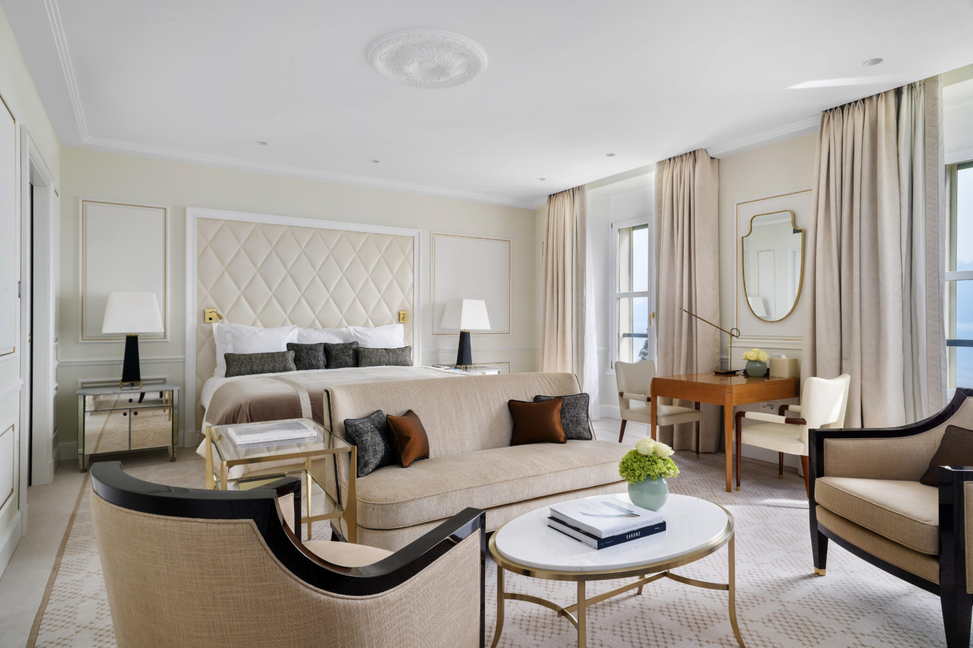 En prenant le pari d’un avenir radieux, la Fondation Sandoz (propriétaire de six hôtels de prestige situés en Suisse : le Riffelalp Resort à Zermatt, l’hôtel Palafitte à Neuchâtel, le Beau-Rivage Palace, le Lausanne Palace, le Château d’Ouchy et l’Angleterre & Résidence à Lausanne) sait qu’elle doit rester fidèle à sa devise de « la tradition en mouvement » mais aussi répondre à trois idées essentielles. D’une part, conserver l’esprit d’une maison intime et personnelle tout en proposant une modularité des espaces. D’autre part, préserver le patrimoine architectural tout en garantissant des prestations technologiques performantes. Enfin, célébrer le cadre naturel exceptionnel tout en limitant l’impact technologique des travaux engagés. Le challenge dans le brief initial se formule donc ainsi : comment conserver l’harmonie et garder l’identité du premier palace de l’arc lémanique où fut signé en 1923 notamment le célèbre traité de Lausanne définissant les contours de la Turquie moderne. Pour prendre la mesure du mythe, il suffit de s’arrêter quelques instants sur la liste des célébrités hébergées dans les suites historiques du palace : John Kerry, Coco Chanel, Charlie Chaplin, Irène Jacob, Daniel Brühl, Marie Gillain, Max Linder, Diana Ross, Phil Collins, Al Pacino, Grace Kelly, Sofia Loren, Willem Dafoe, Paul Newman, Matt Dillon…