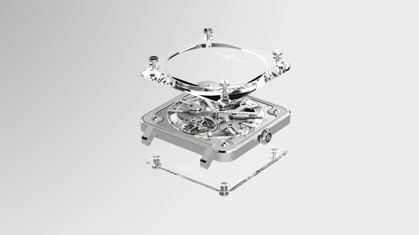 Ce garde-temps épuré a été réalisé et développé dans un mouvement d’exception carré, le calibre manufacture BR-CAL.381 reprenant la forme iconique de la Maison. Le mouvement de cette pièce unique s’offre aux regards en toute transparence, à travers deux plaques de saphir fixées sur une fine ceinture en acier usinée d’une seule pièce. Cette montre très exclusive saura séduire les amateurs d’horlogerie, de par sa singularité, et d’autant plus grâce à la sensation qu’elle procure: celle d’entendre battre son coeur tout en pouvant admirer son fonctionnement minutieux.