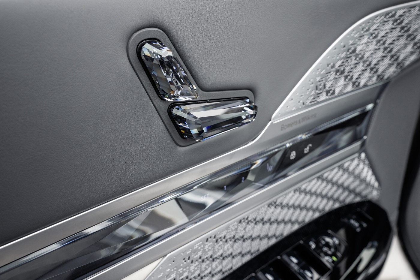Cette nouvelle série 7 propose un véritable jeu de lumière « Welcome » et « Goodbye » créé par des cristaux Swarovski rétroéclairés pour un effet lumineux riche en émotions, une double calandre BMW aux contours illuminés et un tapis lumineux dynamique avec projections animées devant les portes de la voiture. Deux teintes ‘BMW Individual bi-ton’ sont proposées en option.