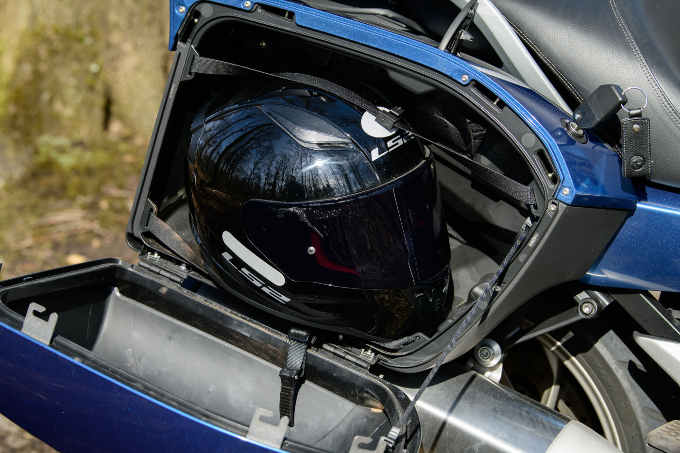 La moto bénéficie d’une excellente qualité d’assemblage et la finition n’amène aucune critique. Quant au chargement, il est parfait avec un gros top-cas accueillant 2 casques intégraux, deux valises latérales (contenant chacune 1 casque intégrale) et deux petits compartiments sur les parties latérales de la K1600 GTL. Au-dessus du compteur, un petit compartiment permet de recharger votre smartphone en le connectant à un port USB.