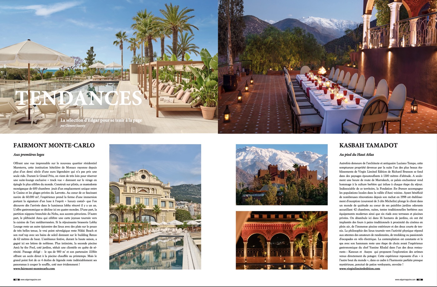 Edgar est un magazine trimestriel. Découvrez nos sujets mode chic, design auto-moto, horlogerie, vins, mais aussi domotique, maroquinerie de luxe, ainsi que les accessoires qui font la vie quotidienne. Avec également des destinations exceptionnelles, étant entendu que notre homme du XXIe siècle est un voyageur averti et très exigeant.