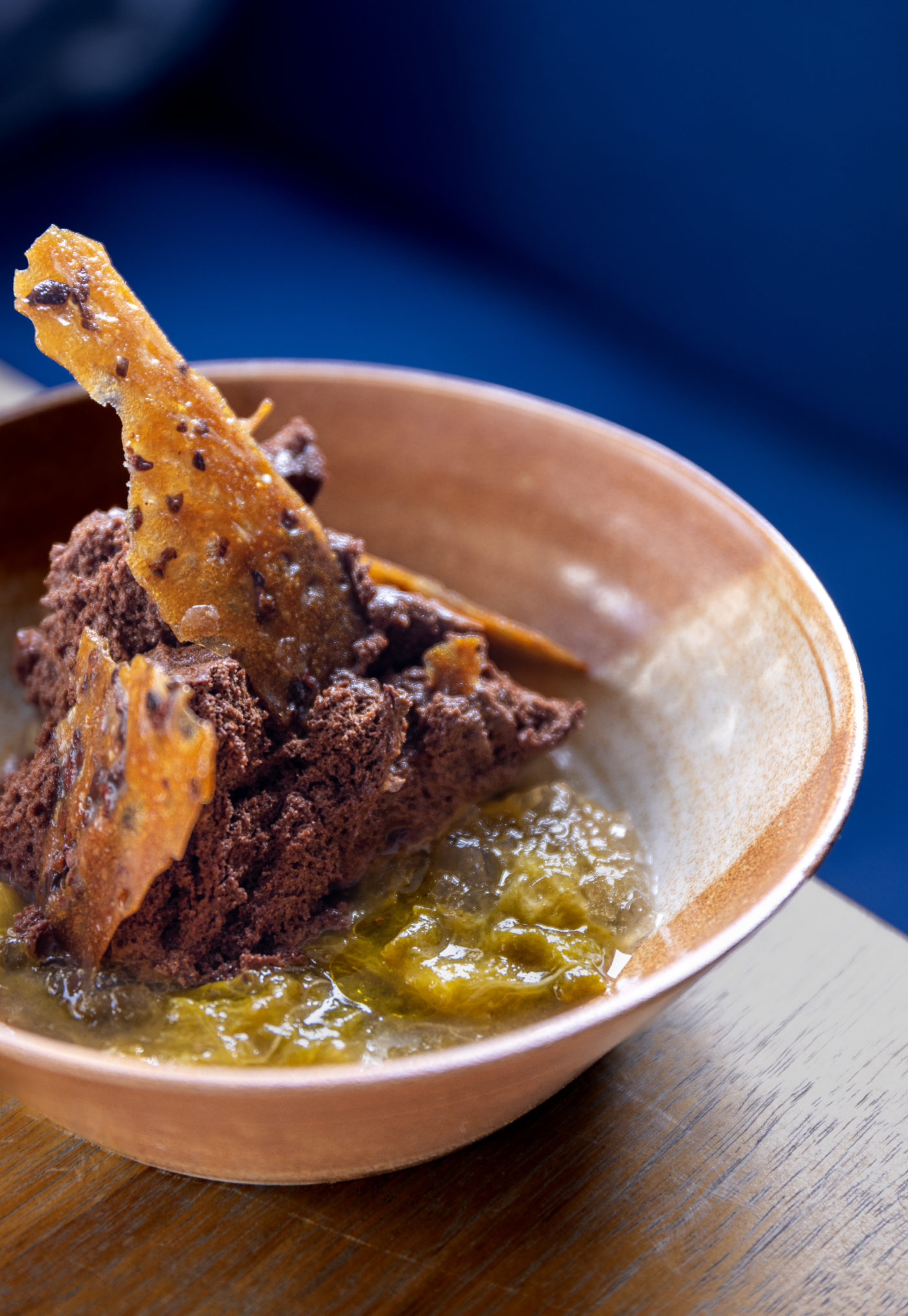 Enfin, les becs salés peuvent poursuivre sur l’Assiette de fromages affinés de chez la Mélodie des Fromages et les becs sucrés, sur la Mousse au chocolat 70%, compotée de reines claudes au thé, tuile au grué de cacao et fleur de sel. Accompagnée d’un café artisanal servi dans son mug en terre cuite, délice à lui seul, nous avons bien fait de ne pas négliger l’option chocolatée, prononcée en cacao sans trop l’être, aérienne, relevée d’une discrète pincée de fleur de sel, surprenante, toujours là où on ne l’attend pas. Sa compotée de reines claudes au thé renvoie directement en enfance, la tuile apporte la texture manquante. Au moins Camille Guérin a su respecter un credo : le meilleur pour la fin.