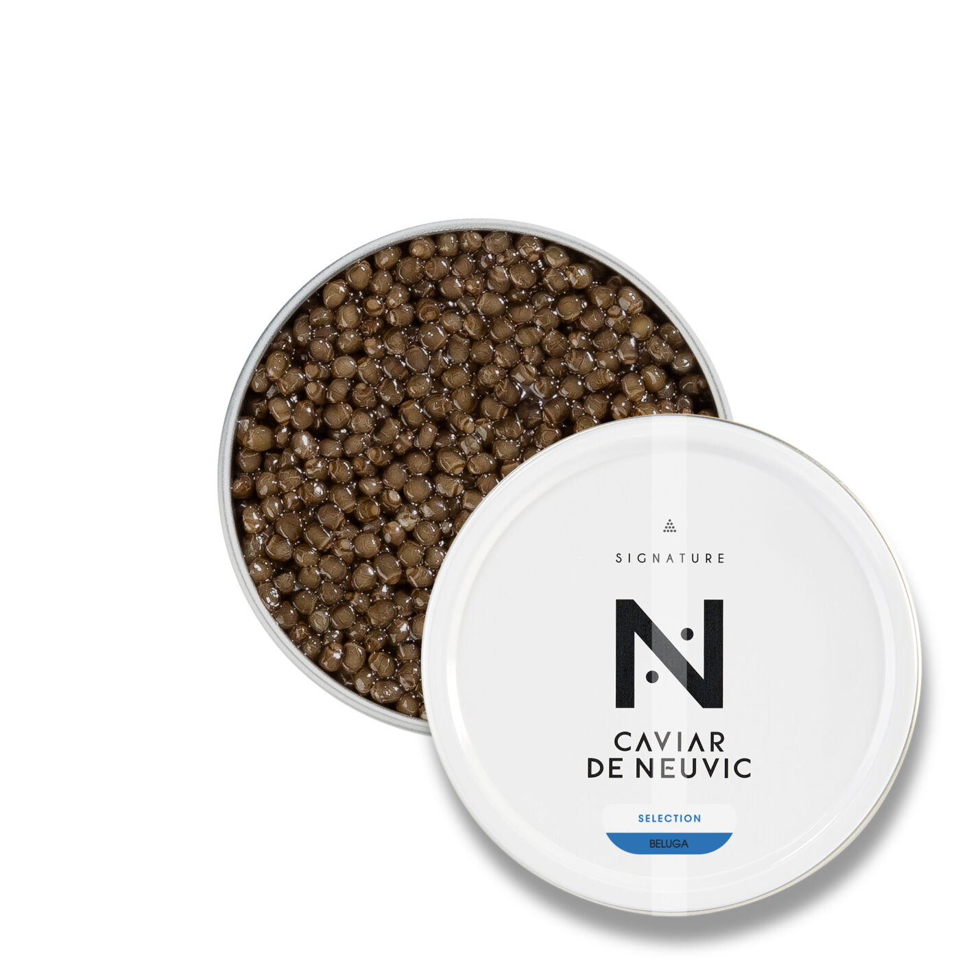 Signature. Sélection rigoureuse de poissons, grains homogènes, texture souple, bon équilibre aromatique : Baeri Signature : 75 € les 30 g / Osciètre Signature : 89 € les 30 g / Sevruga Signature : 90 € les 30 g / Beluga Signature : 192 € les 30 g