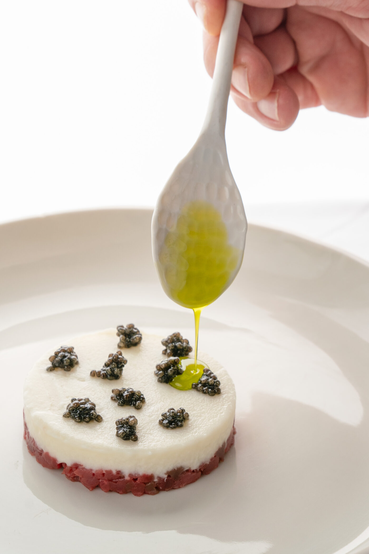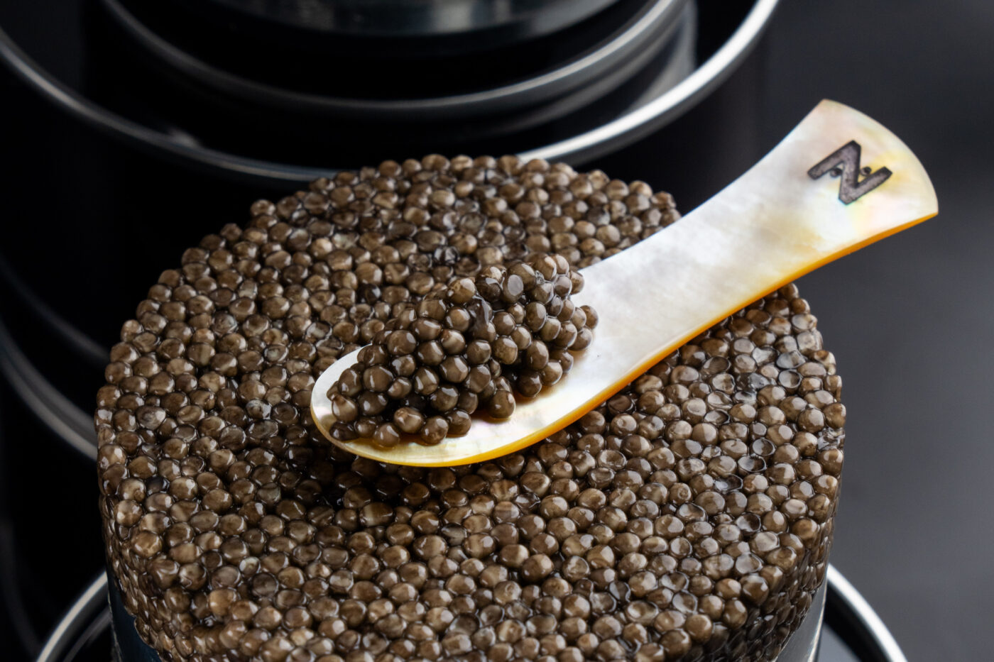 Il y a le Caviar Beluga (Huso huso) élevé dans un lac de montagne en Bulgarie via notre partenaire exclusif. Ce caviar provient de l’esturgeon Beluga, espèce à cycle long (minimum 18 à 20 ans). Il est reconnaissable à ses gros grains gris perle, sa texture crémeuse et sa puissance aromatique. Mais aussi le Caviar Sevruga (Acipenser stellatus). Ce caviar, rare en élevage, est issu d’un esturgeon à la silhouette fine et élancée. Il présente de très petits grains de couleur anthracite. Considéré autrefois comme un caviar de connaisseurs, il se distingue par ses notes puissantes et une belle intensité aromatique.