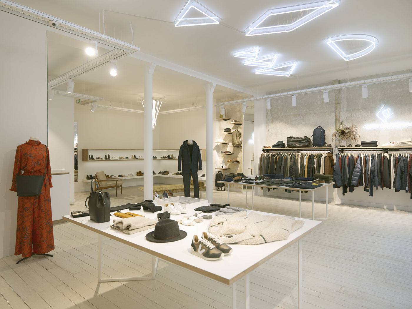 Raviver la flamme d’un quartier éternel en s’harmonisant à son âme était le pari du concept-store ! Afin de relever le défi, tout y a été pensé jusque dans les moindres détails. Murs non peints, sol en micro-mosaïque étant à l’origine du verre d’écrans d’ordinateur, Enercoop pour l’énergie verte, ou encore luminaires signés Kleber Matheus arborant le look de véritables oeuvres d’art. Fondé avec 3 personnes, l’équipe s’en compose aujourd’hui de plus d’une vingtaine. Fusion de talents pour un travail ambitieux, chacun d’applique à renouveler Centre Commercial continuellement. Veja, Bleu de Paname, Ami, Michel Vivien, Common Projects ou encore Church’s seront au rendez-vous !