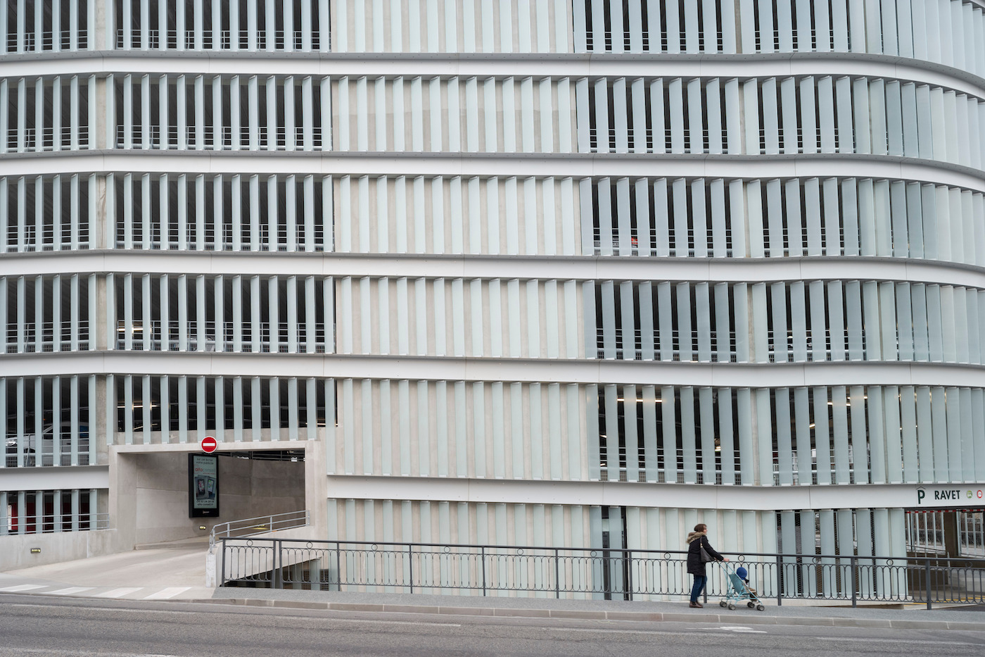 Conçu par Hérault Arnod architectes, en collaboration avec l’artiste Krijn de Koning pour QPark, Ravet est un nouveau parking de 499 places au volume courbe et translucide, implanté en limite du quartier historique et qui propose aux usagers un belvédère offrant une vue panoramique sur la ville de Chambéry et les montagnes au loin.