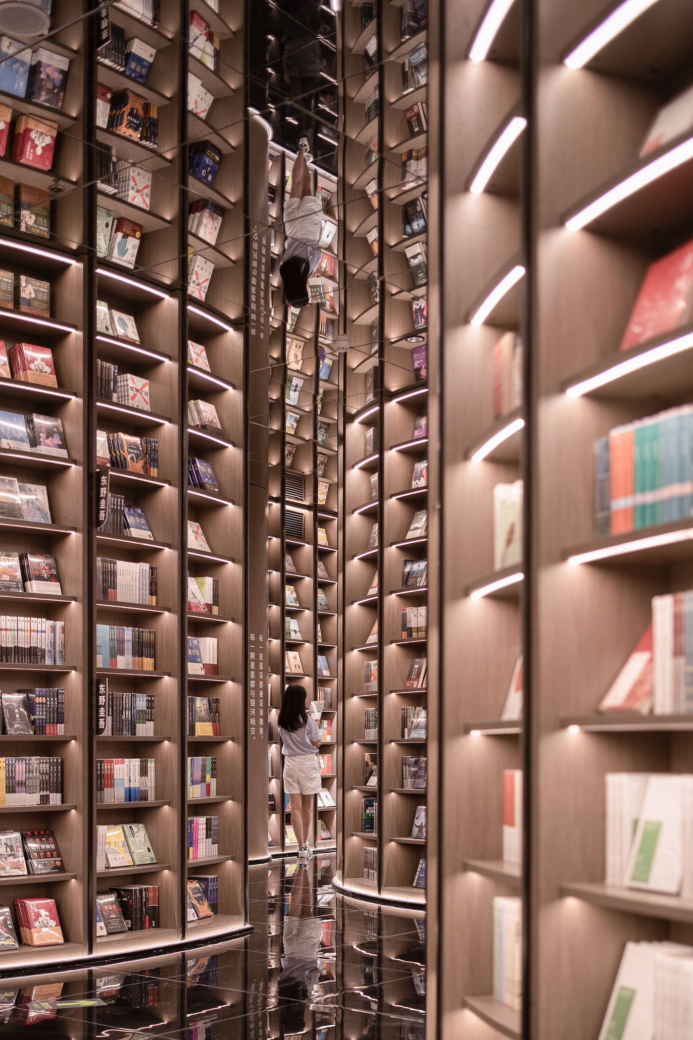 Car lorsque on monte les escaliers, les étagères sur le côté offrent une variété de livres à portée de main. D’autres zones inaccessibles sont elles décorées de films à motifs de livres, pour occuper fictivement l’espace. En créant des décors finaux et en utilisant des techniques architecturales, le designer se sert des montagnes et des rivières dans l’espace intérieur, pour présenter aux lecteurs un paysage artistique puissant qui capture la beauté de la nature.