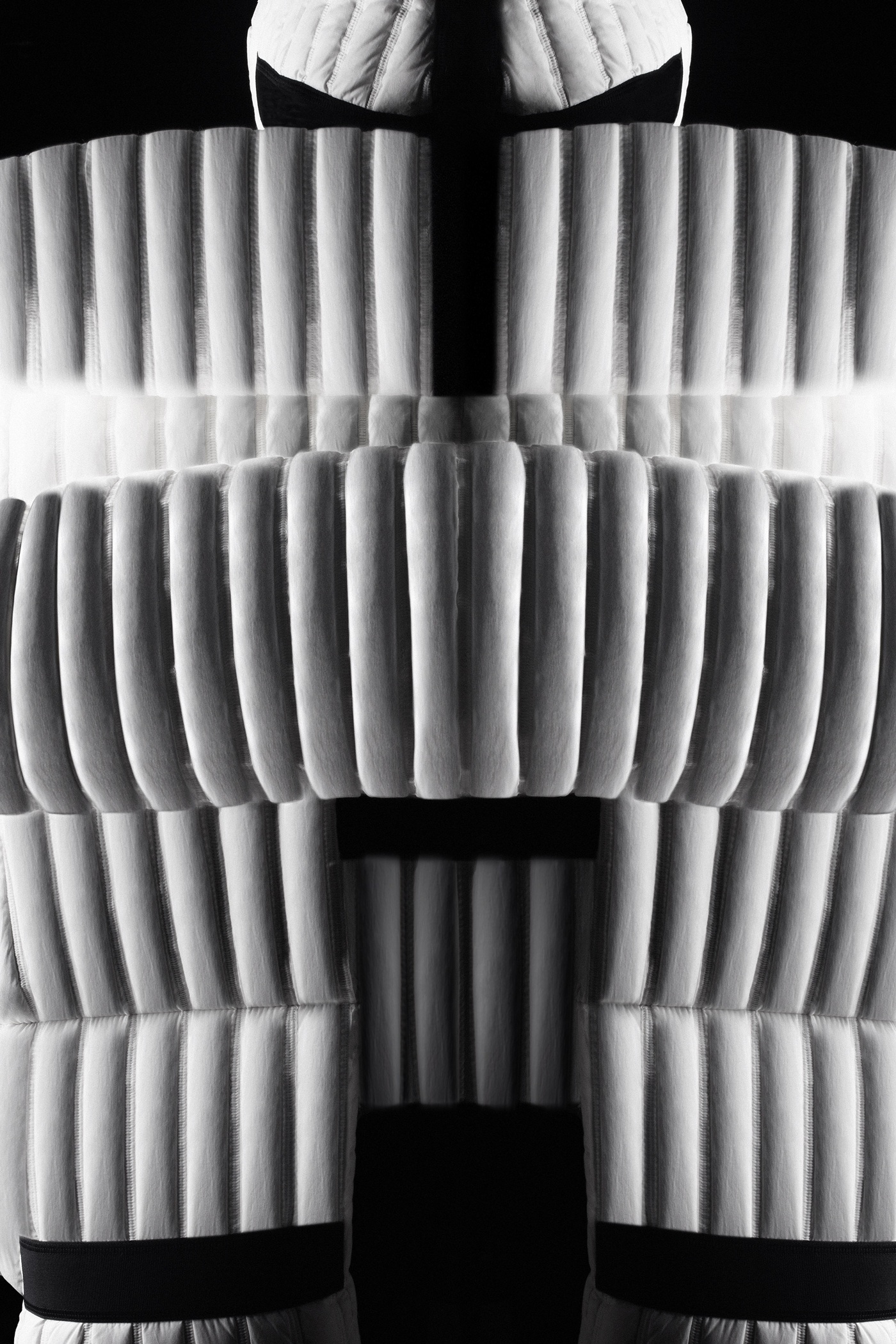 Se focalisant sur des éléments en lien avec la fonction, la protection et la condition humaine, le designer aime donner vie à des volumes sculpturaux à travers les pièces qu’il réalise. Entre cubisme et perspective fonctionnelle, à partir de nylon mat et de coton « Dawn », le dialogue entre le vêtement et le corps est complètement revisité. La collection se traduit par des pièces paraissant aussi légères que gigantesques comme si elles avaient été gonflées tels des ballons.