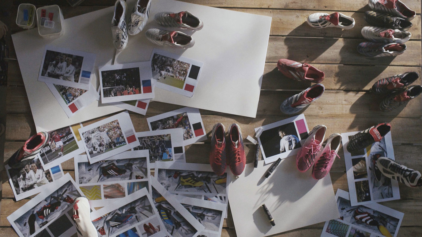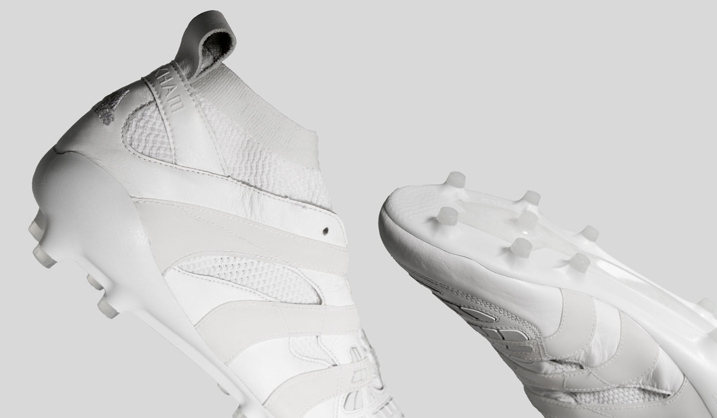 Cette édition limitée célèbre officiellement les 20 ans de partenariat qui unissent le footballer et la griffe aux 3 bandes ! Durant la conception de cette ligne, Beckham a déclaré le modèle Accelerator comme son favoris et les couleurs rouge, noire et blanche comme les plus symboliques de sa carrière. Cette collection réinventant les Predator Accelerator gravite donc autour des souvenirs du joueur en donnant naissance à 3 paires différentes.