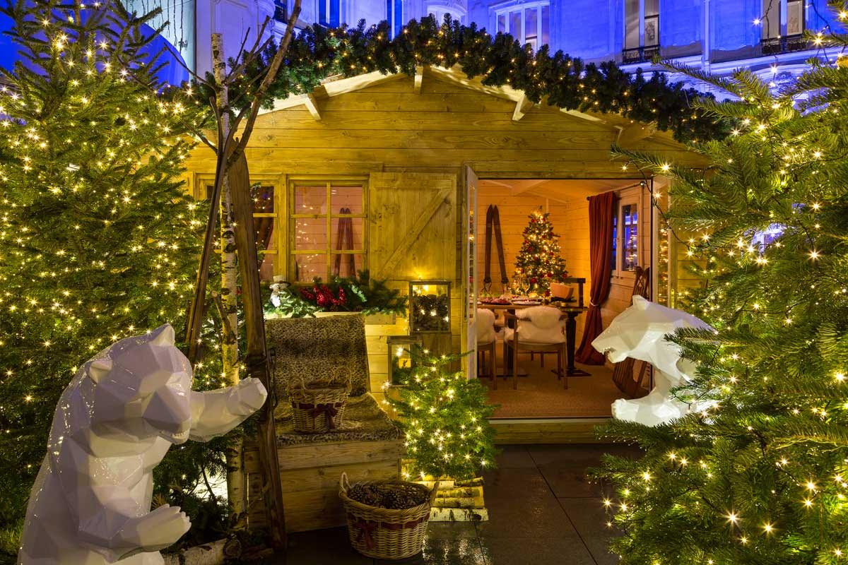 L’Hôtel Barrière Fouquet’s se met à l’heure d’hiver en proposant sur la plus belle avenue de Paris un chalet de 20 mètres carrés dans une ambiance cocooning et chaleureuse. La décoration typique est accompagnée d’un menu très gourmand aussi bien pour le déjeuner que pour le dîner: Cocktails imaginés par le meilleur ouvrier de France, le chef Barman Stéphane Ginouvès, mais aussi raclette, charcuterie, salade truffées et pommes de terre grenailles sont mis à l’honneur. Enfin, toujours dans un esprit hivernal, l’hôtel propose une mini omelette norvégienne et une fondue au chocolat.