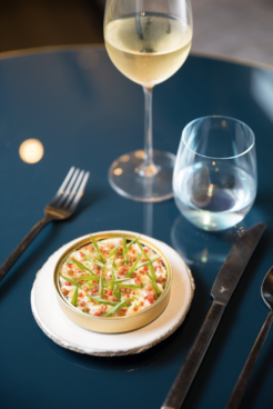 Aux côtés de Jean-Edern Hurstel, c’est le chef Laurent Poitevin qui s’applique à élaborer des assiettes incubatrices de fraîcheur avec une touche esthétique jouant sur les dimensions. Entre daurade royale en ceviche aux agrumes, spaghettis à l’encre de seiche et au caviar de Sologne, et boeuf mariné aux épices et aux oignons caramélisés, le panel de saveurs est étendu. C’est aussi valable pour les desserts réalisés par le chef pâtissier Yann Le Douaron qui propose de nombreux délices comme un soufflé signature en version chocolat noir et coeur coulant, ou une tarte aux pommes Boscoff et son caramel onctueux accompagné de sa glace au lait.