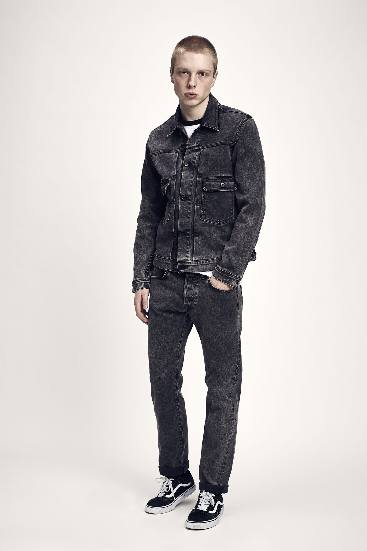 Nouveaux délavages, nouvelles techniques de fabrication: la production japonaise premium des usines respectées Kaihara et Nihon Menpu s’allient avec les styles vintage E-Modern et E-Classic. Cette saison, la gamme denim offre une approche plus actuelle et élaborée, avec une attention particulière apportées aux coupes et aux materiaux proposés dans un panel de denim, comprenant 2 modèles forts de la collection : l’Acid Wash noir et le Printed Red Dot.