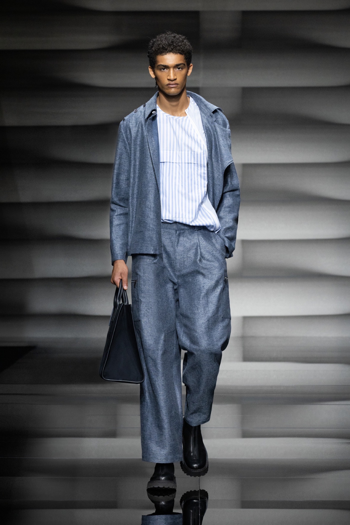 Elle va et vient au fil des saisons comme l’une des grandes tendances intemporelles de la mode. Plus qu’un motif la rayure invite à l’élégance, à une certaine rigueur savamment détournée dans les collections Emporio Armani qui, de superpositions en nuances, a su synthétiser harmonie et contrastes, le tout rehaussé de détails subtils. Et naturellement bien accessoirisé pour qui souhaite se distinguer. De volume en fluidité pour des coupes faciles en légèreté et confort des étoffes, le vestiaire Emporio Armani vous engage et vous dégage… des codes.