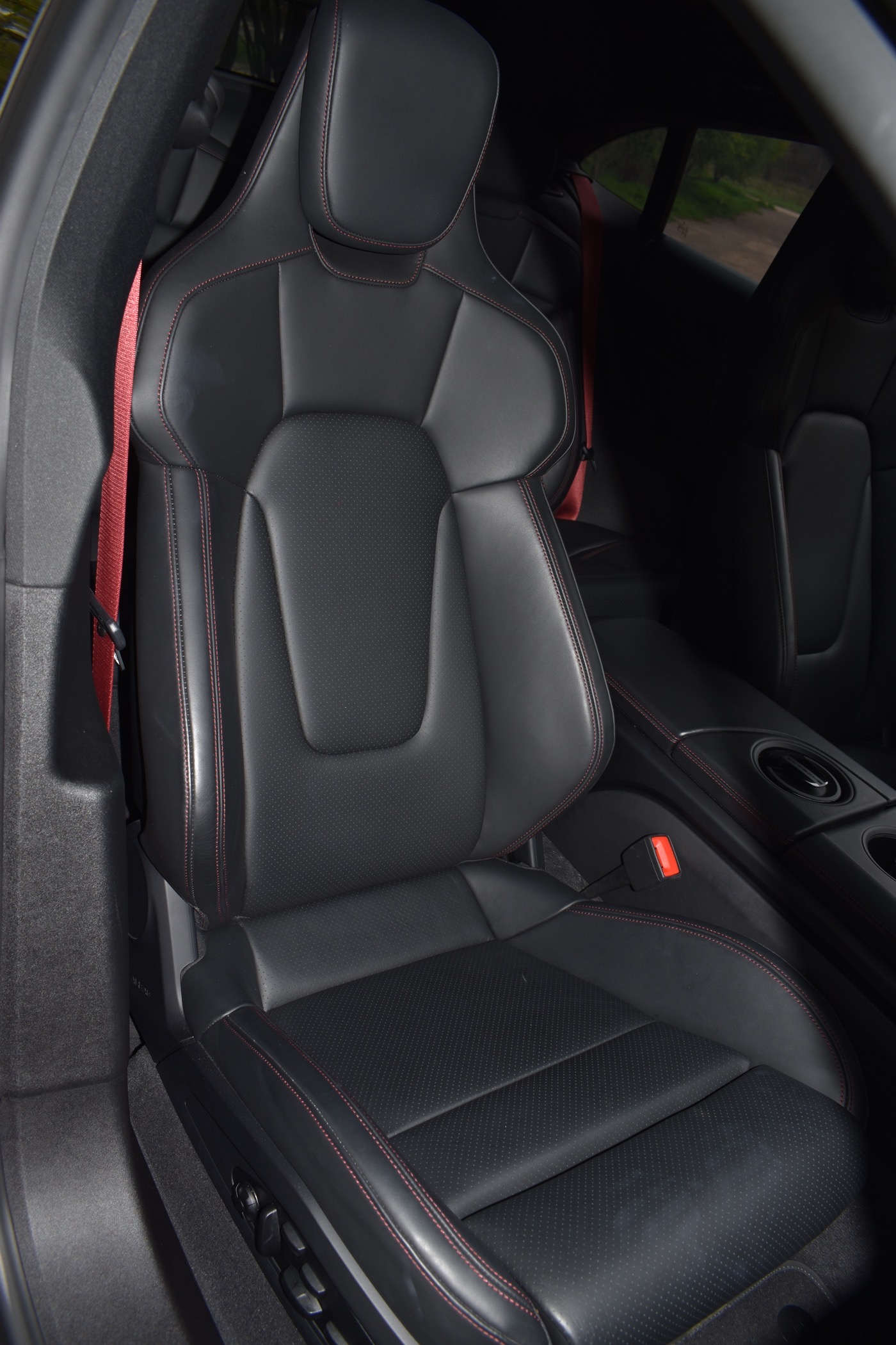 Extérieurement, la Taycan 4S Sport Turismo en impose, avec ses pneumatiques de 265 x 35 x 21 à l’avant et 305 x 30 x 21 à l’arrière, ses immenses jantes RS Spyder Design de 21 pouces, sa large poupe, son avant agressif et ses dimensions : 4,96 mètres de long pour un peu plus de 2 mètres de large avec les rétroviseurs. Une carrure qui appelle à la prudence lors des évolutions en parking ou sur routes serrées pour ne pas rayer les superbes jantes (facturées 4 632 euros en option) qui équipent notre modèle d’essai.