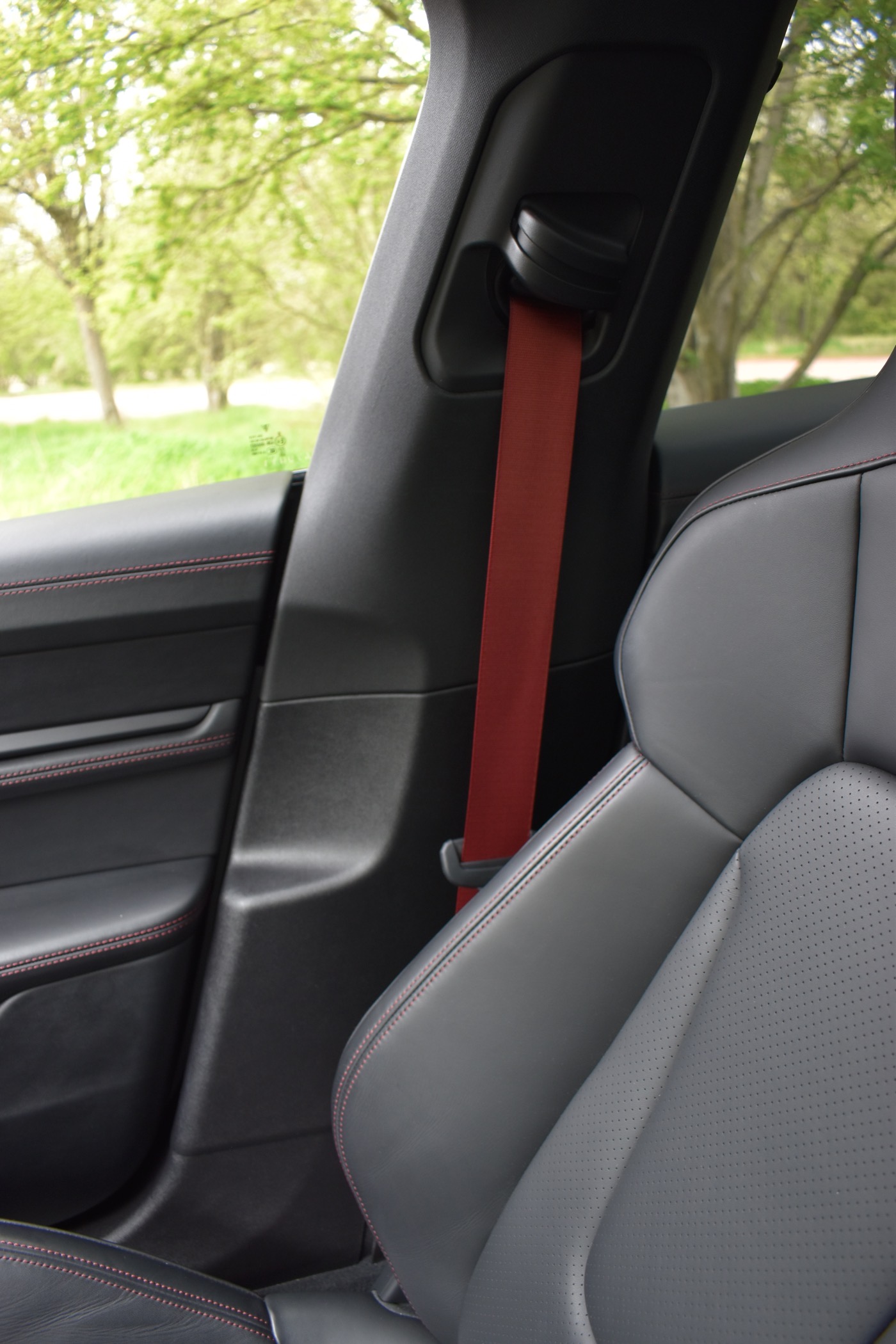 L’habitacle n’appelle que très peu de critiques, à part l’entre deux portes qui mériterait un matériau de meilleure qualité ou du moins recouvert de suédine, pour compléter l’ensemble intérieur, sobre et à la qualité de finition exemplaire. Le minimalisme Porsche est de rigueur et cache, au travers des 2 grands écrans (un pour le conducteur et un autre pour le passager) intégrés dans la planche de bord un nombre incroyable de fonctions, de réglages et d’options. Compatible Smartphone Androïd auto et disposant de l’assistant vocal Google, cette Taycan est technologiquement à la page.