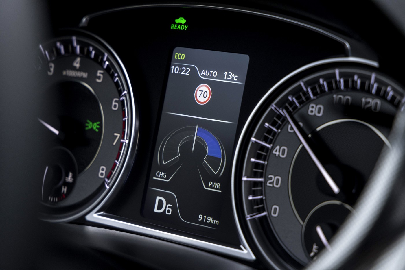 La voiture montre peu de roulis et son comportement sur route sinueuse est rassurant et souple, malgré une suspension un peu rigide. La voiture freine bien, les accélérations sont correctes sans être celles d’une sportive et sont soutenues par le moteur électrique dès qu’on met le pied au plancher.