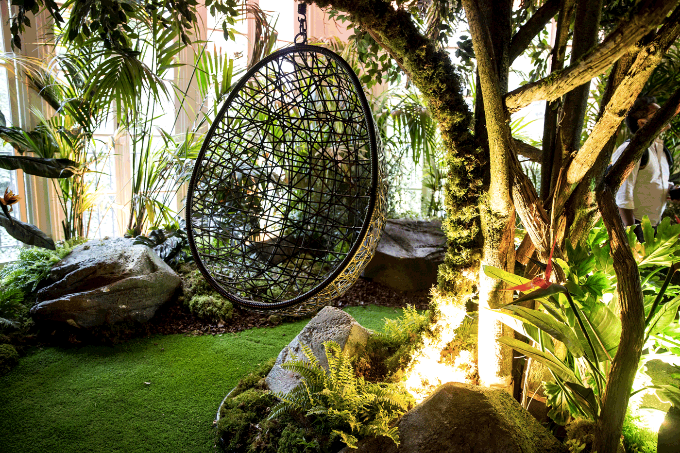 Plongez aussi dans la jungle tropicale de Polo&Pan, univers exotique à la végétation luxuriante dans lequel vous pourrez interagir avec des instruments qui vous inviteront à composer ou décomposer l’hymne du duo: La Canopée. C’est dans le but d’illustrer l’impact environnemental positif du BonCoin qui économise 8 millions de tonnes de CO2 chaque année, que la nature à fait irruption dans le bâtiment. « On nous a proposé de faire une installation végétale à l’image de notre morceau Canopée. On s’est dit créons des instruments à partir de végétaux.» Polo & Pan
