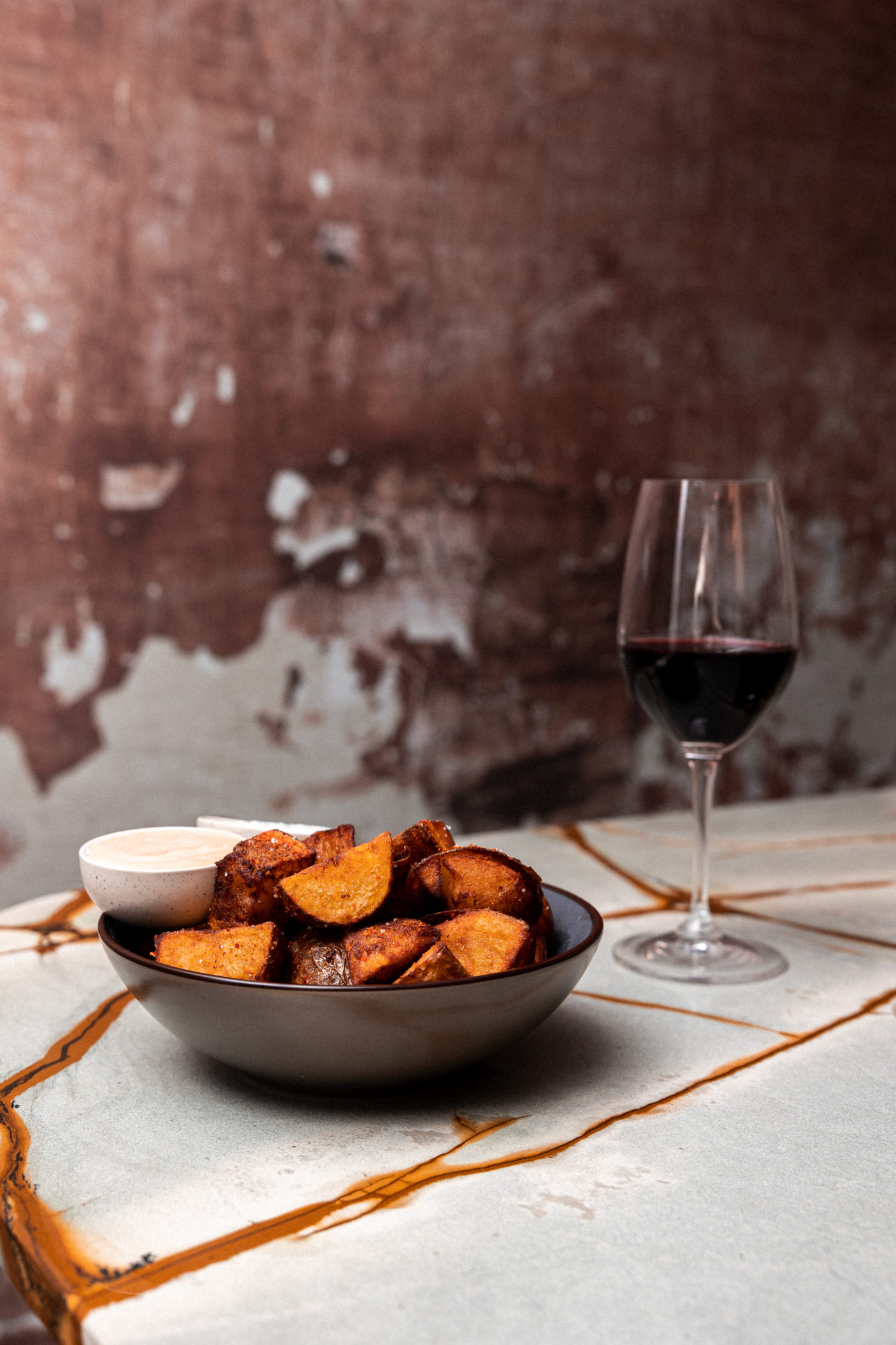 Surprise : En contrebas, une charmante cave au design épuré a conservé ses attraits d’autrefois tels que les murs en pierre, le tout rafraichi d’une palette de couleurs terre cuite – vieux rose dans un esprit mi-bohème, mi-industriel. Elle s’ouvre sur une cour pavée aux accents bucoliques.