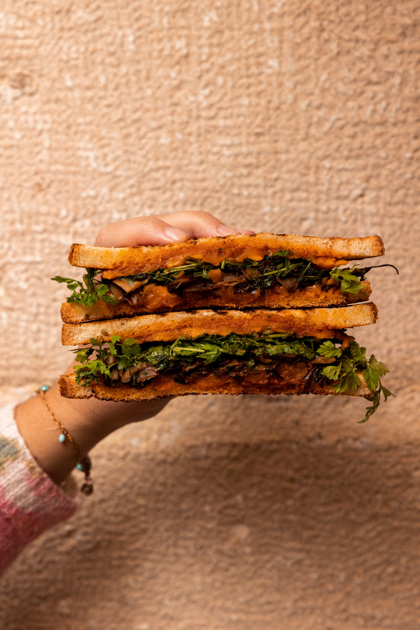 Le marathon se poursuit sur d’autres assortiments mets-vin ou mets-saké, autour d’un plat végétarien : Courge butternut marinée dans son jus, condiment de marron et réduction de betterave, ou d’une spécialité carnée telle que le « Casse-Grain », version élaborée du club sandwich, garni de pleurotes grillées et d’une farce à la soubressade subtilement relevée. Le sommelier recommande de les associer à un vin blanc de Gaillac, 100% composé de Mauzac, cépage méconnu originaire de la vallée du Tarn.