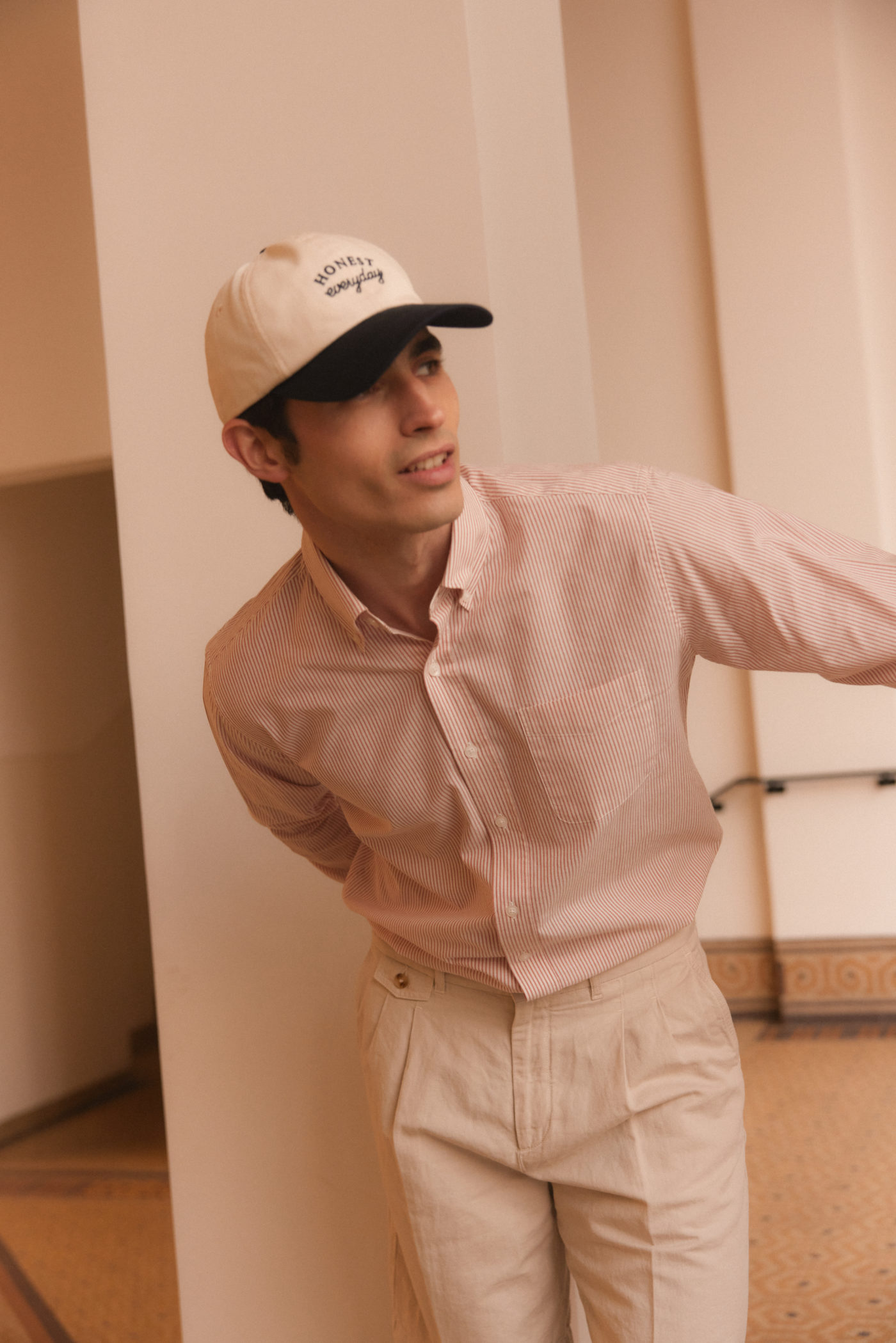 Nous avons commencé l’aventure Hast à trois il y a dix ans. À l’origine, Hast était une marque mono-produit, centrée sur la chemise. Pour nous, la chemise est la pièce centrale du vestiaire masculin et nous ne trouvions pas de modèle qui corresponde à nos attentes à l’époque. Il manquait un entre-deux : entre des marques avec une offre à des prix très élevés, et des enseignes de fast-fashion qui proposaient des vêtements le plus souvent dans des matières peu qualitatives et aux coupes très peu travaillées. Nous avions alors décidé de créer Hast. La chemise reste le cœur battant de la marque mais nous avons étendu notre offre à l’intégralité du vestiaire masculin tout en gardant la même exigence quant aux matières, aux coupes, aux finitions. Pour la petite anecdote, la première chemise Hast en popeline blanche est toujours en vente sur le site (elle n’a presque pas changé aujourd’hui et nous en sommes toujours aussi contents !) L’acronyme “Hast” signifie Honest And Simple Trend (tendance honnête et simple), car la marque s’est lancée avec l’envie de créer une chemise de qualité, à un prix juste et accessible, sans intermédiaire.