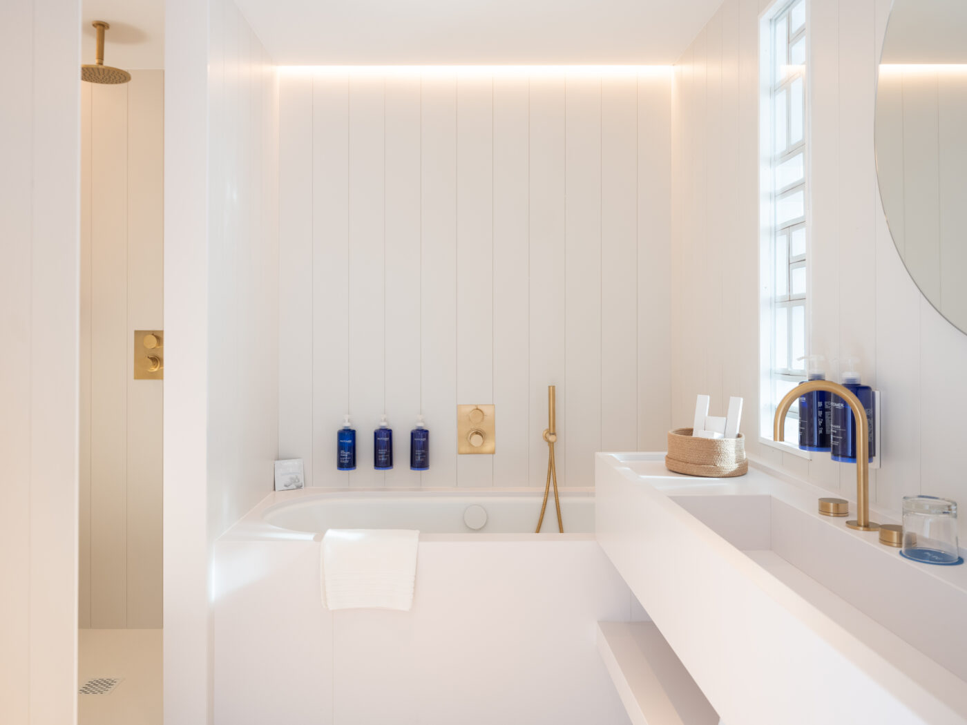 Les 44 chambres et suites de l’Hôtel Bleu prolongent cette philosophie du voyage intérieur. Inspirées de l’univers du yachting, elles conjuguent élégance minimaliste, confort feutré et matériaux nobles.