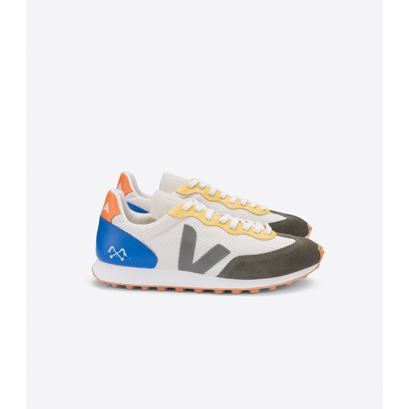 Prenez les couleurs de la collection SS 2019 de Bleu de Paname et ajoutez-y le dernier modèle de Veja, Rio Blanco, voilà la recette ultime pour des baskets légères au style rétro-running, qui ajoutent un design prononcé à n’importe quelle tenue !