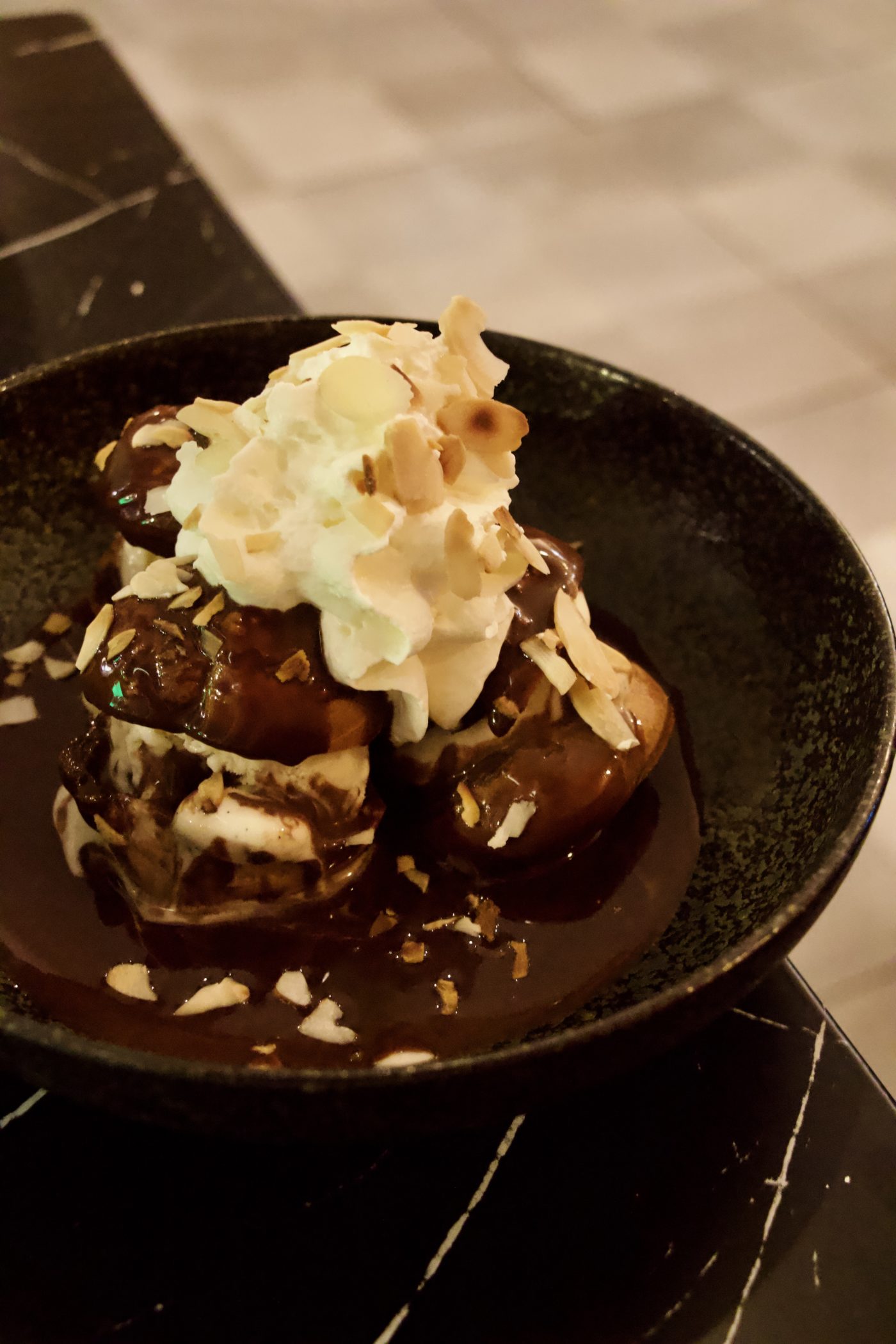 Un simple dessert tel que les profiteroles ne saurait se départir de ce perfectionnisme qui leur est propre : chou maison, chocolat 70%, crème fouettée maison au lait végétal. Le moindre ingrédient ou presque, bénéficie de ces finitions, marqueur de leur originalité.
