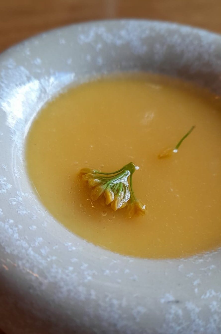 Leur volaille, si fine, si délicate, se déguste comme un poisson rare. La crème de chèvre, relevée de sirop de rose, bouleverse les codes du sucré-salé. Les quantités sont subtilement dosées et compensées par l’effet de surprise, présent à chaque bouchée, dans une véritable partition de saveurs. L’élégance des compositions culinaires s’accorde avec un penchant pour l’art visuel : les mets sont aussi agréables à regarder que la pureté des récipients dans lesquels ils reposent. La présence de matières brutes ou minérales telles que la pierre, l’argile ou même l’ardoise s’inscrit dans la continuité de ce retour à des valeurs primaires, puisées dans la nature.