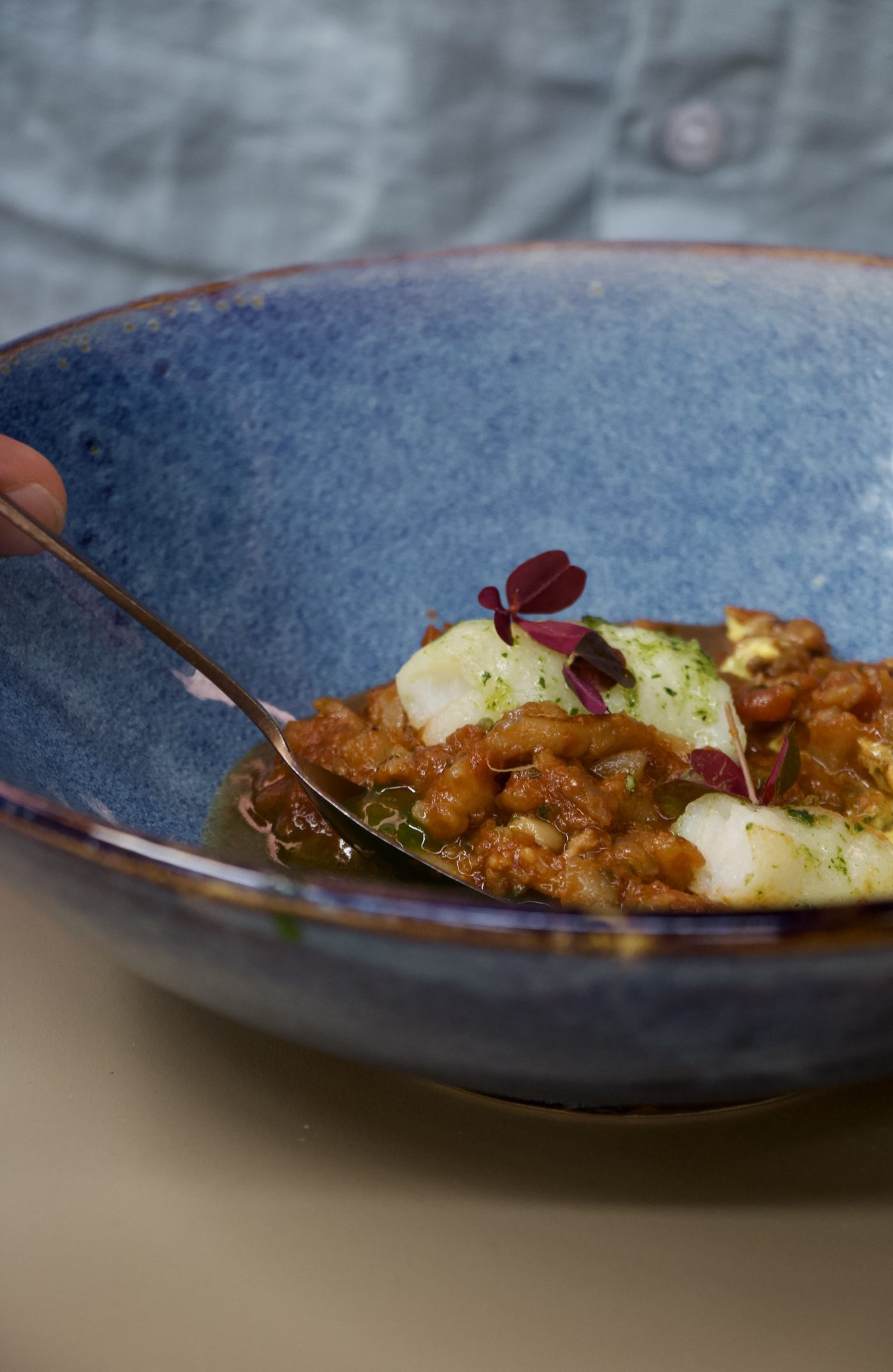 Le palais est un organe qui se travaille et cela passe par la découverte de nouvelles sensations. « Les gens ont l’habitude de prendre ce qu’ils connaissent », confie le chef. « Moi, je les sors des sentiers battus. » Dans cette ambiance bohème, le murmure des cigales en bruit de fond, des plats surprises défilent sur la large terrasse extérieure, débordant un peu sur l’intérieur même les jours d’été – le restaurant compte plus de deux cents tables pour seulement deux chefs en cuisine et un chef pâtissier – qui rarement déçoivent. À l’évidence le sud règne en maitre. Produits locaux et plats typiques de la région figurent parmi ses best of. Il se fournit en fruits et légumes de saison chez son voisin maraicher du domaine de l’Hort del Gal, à qui il voue une confiance immuable comme à l’ensemble de son équipe et où il s’approvisionne deux fois par semaine. Toutefois le chef possède ses propres parcelles viticoles desquelles il extrait un vin « frais, léger », sa cuvée V&P.