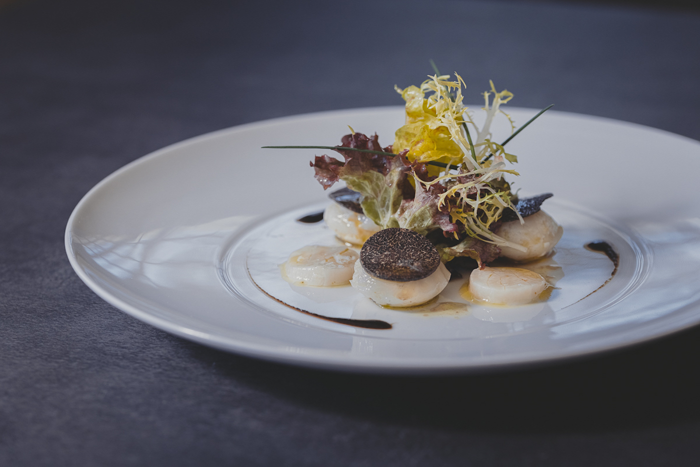 Son marché c’est à Vintimille en Italie qu’il le fait, pour la ricotta ou les feuilles de bourrache, ou le fromage affiné par le Maître Fromager Monsieur Anthony (Alsace). Le Chef ne jure que par le meilleur. Sa cuisine savoureuse est élaborée toute en détails et justesse pour des saveurs intenses. Poulpe de roche ou raviolis de daube de chevreuil, Saint-Jacques ou caille royal de Bresse les propositions évoluent et collent aux saisons avec une constante : l’excellence.