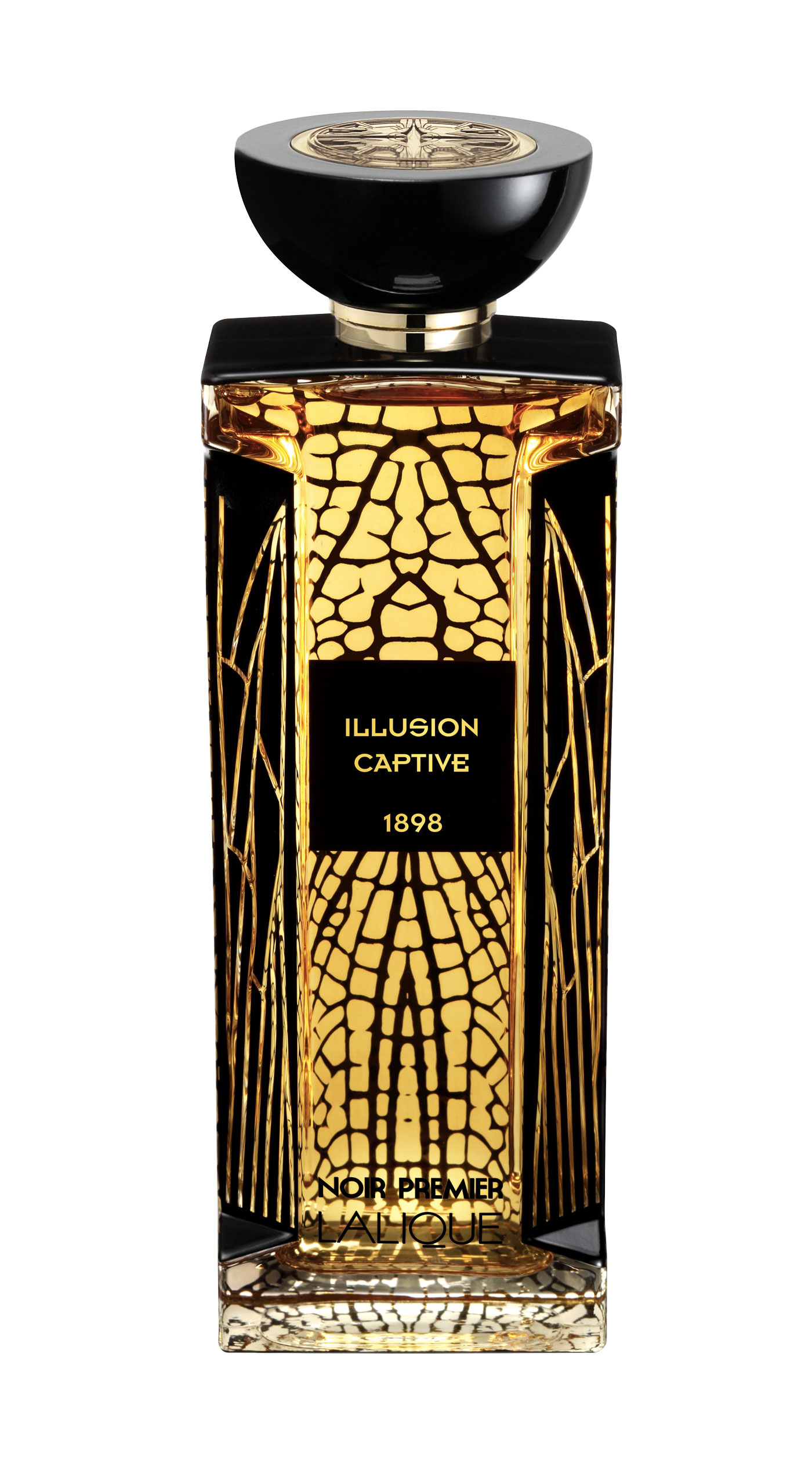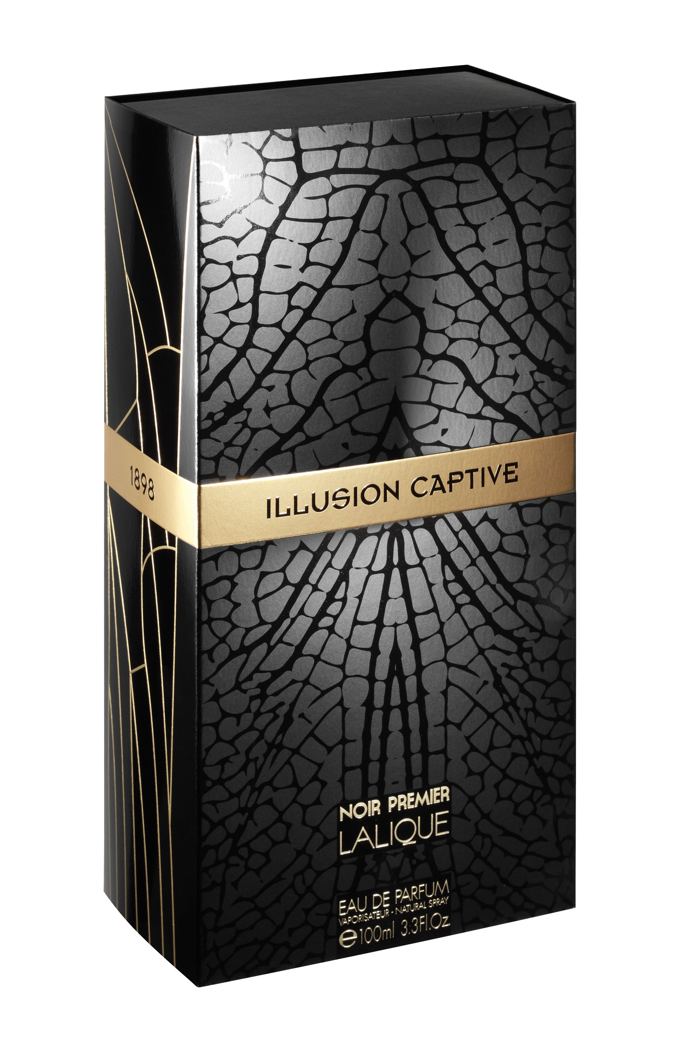 C’est à la majestueuse libellule que la Maison Lalique rend hommage en dévoilant Illusion Captive. Pour cette occasion, le flacon Noir Premier revêtit un gracieux décor de mosaïque évoquant les légères nervures des ailes de libellule. Gravé sur la facade arrière du flacon en verre transparent, ce dessin subtil se reflète sur la façade avant du flacon rehaussé par l’or liquide de la fragrance. En collaborant avec Karine Dubreuil-Sereni, la Maison lance ce parfum en associant fraicheur et profondeur. Le fond boisé aux notes de cèdre, lui procure un ton profond et masculin, vivifié par un chypre plus frais ainsi que par quelques touches de bergamote. La vanille adouci le mélange et la cannelle et le patchouli viennent épicer et réchauffer la senteur.