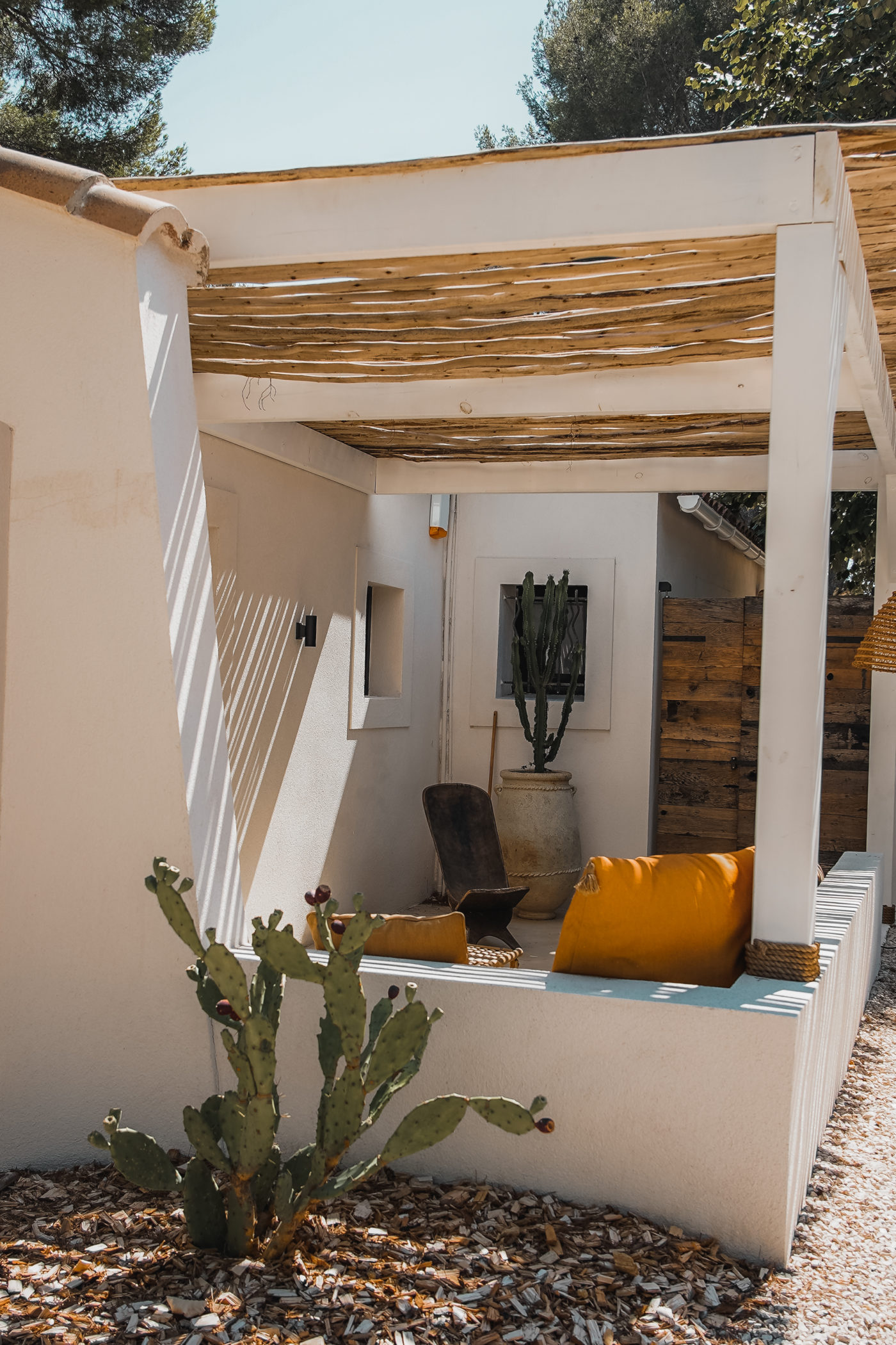 Leur surface varie de 30 à 50 mètres carrés, sans compter le terrain qui les entourent, vaste parcelle de nature propice à la rêverie et à la baignade silencieuse, avec ses nombreux points d’eau : un magnifique bassin surélevé pour chacun, une douche ou une baignoire extérieure (parfois les deux), un jacuzzi pour le spacieux Adoura. Les cabanons disposent d’une identité singulière mais porteuse de gènes communs : un esprit Finca, maison typique des baléares, en émane, mêlé au souvenir d’un Riad marocain, formant un ensemble bohème et lumineux, resplendissant aux beaux jours.