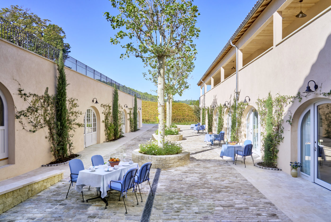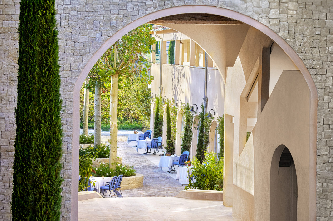 Les inconditionnels de la table étoilée « Hélène Darroze à Villa La Coste » auront désormais le loisir d’opter soit pour la « grande partition », incluant nuitée(s) au sein des très élitistes suites de la Villa La Coste ou sinon d’envisager un scénario un brun plus « démocratique », mais tout aussi excitant : celui de l’Auberge La Coste en contrebas et à proximité des cinq vibrants restaurants environnants (le café Tadao Ando, Francis Mallmann, Vanina, La Terrasse..) jouxtant le chai de Jean Nouvel et l’arbre saisissant de l’artiste Tia Thuy Nguyen. Ce nouveau chapitre, misant sur l’accessibilité (les chambres sont proposées partir de 290 euros) voit ici le jour à travers 76 chambres dont deux suites modulables, à la literie palace, consacrant une élégante simplicité.