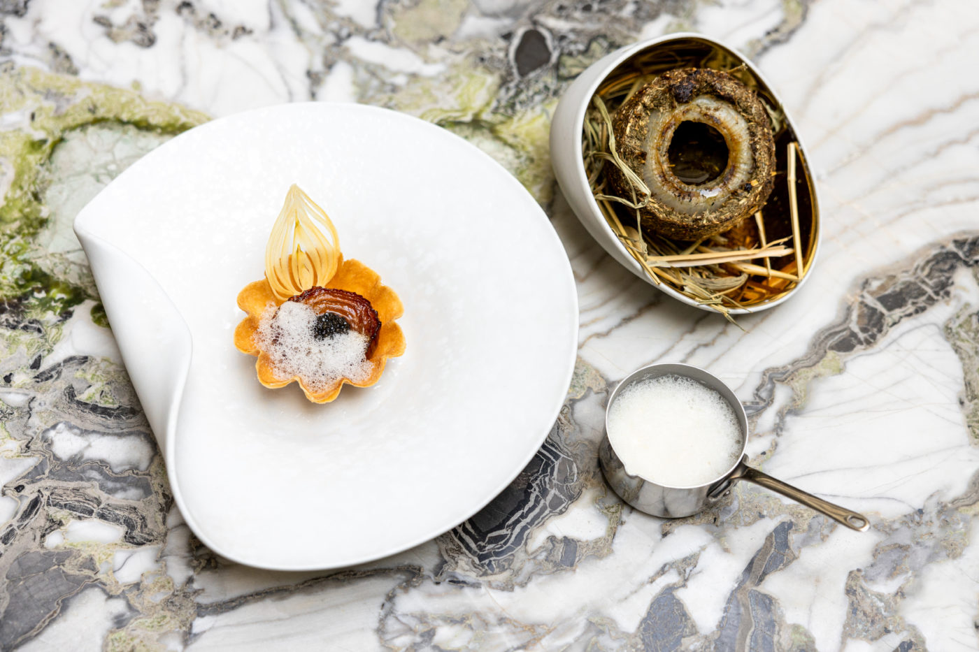 L’expérience culinaire que livre ce jeune chef étoilé à la table de l’hôtel cinq étoiles Le Burgundy Paris est centrée sur le travail du légume. Une table où l’audace ne fait pas défaut !