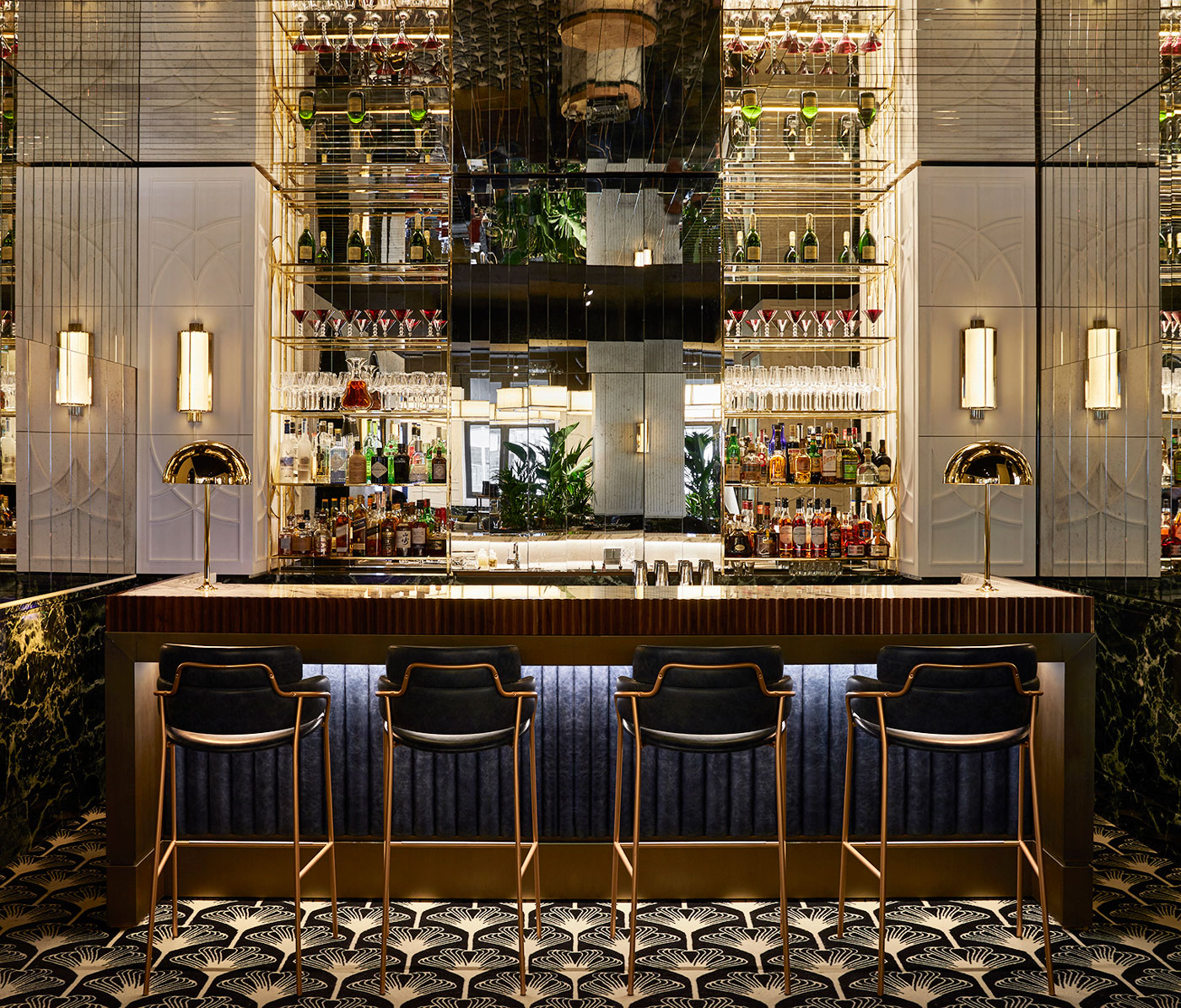 Situé à l’emplacement de l’ancienne Fermette Marbeuf, le Beefbar se voit doté d’une sublime salle de style Art Nouveau inscrite depuis 1983 à l’inventaire des Monuments Historiques. Humbert & Poyet ont eu à cœur de la rénover dans les pures tradition de l’artisanat en s’entourant des meilleurs corps de métier : staffeur, miroitier, peintre décorateur…