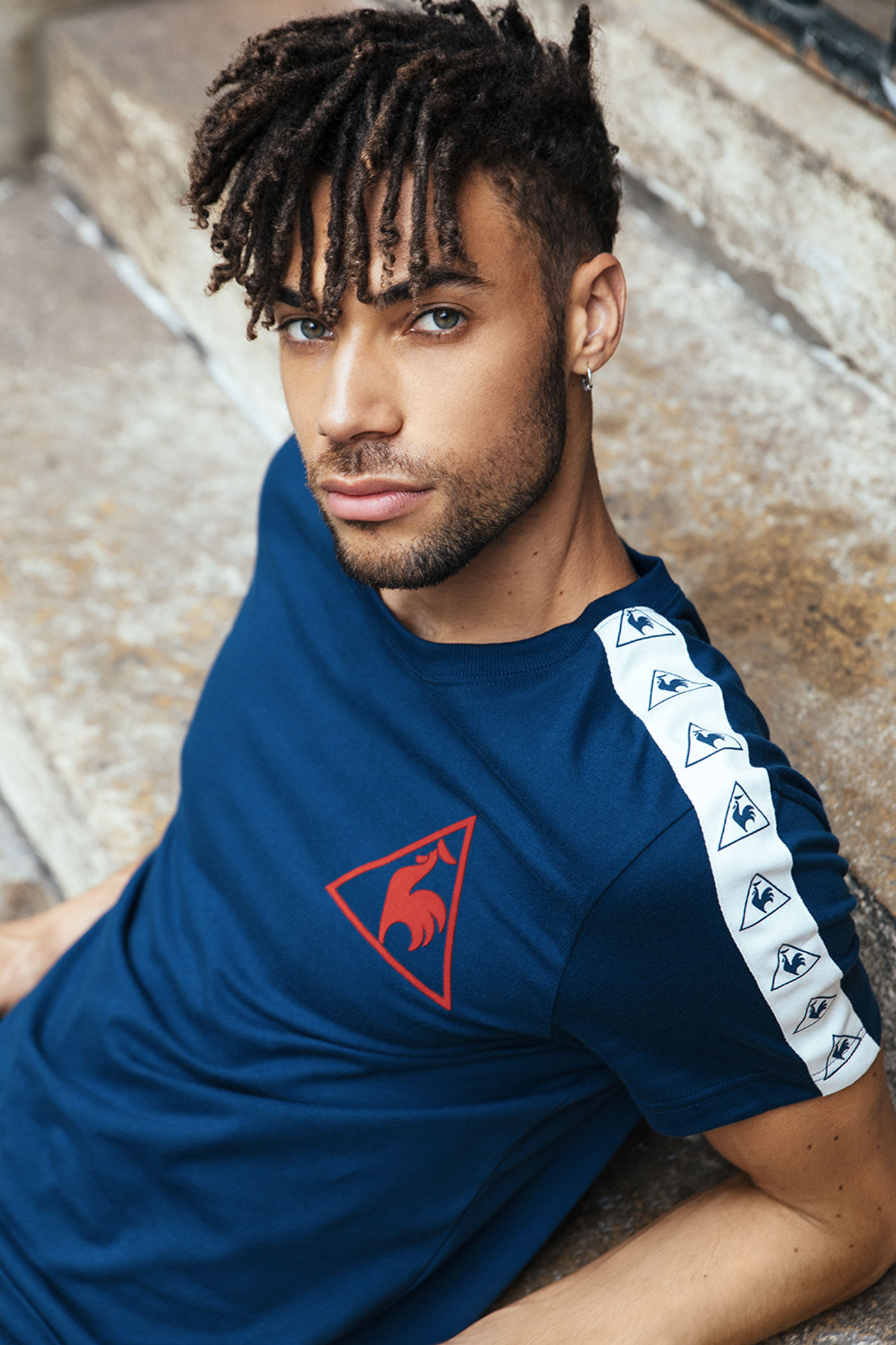 Parmi t-shirts, sweats et polos, ressortent les codes du vêtement de training et l’essence d’une période durant laquelle les logos apparents en taille XL étaient source d’une tendance extensive. Le coq sportif modernise ce step iconique du monde de la mode : des bandes sérigraphiées de logos répétés sont cousues sur les manches de certaines pièces, les lettres du coq sportif sont flockées sur des bandes coupées-cousues sur d’autres et le logo est apposé en rouge sur l’ensemble de la ligne. En revisitant cet héritage datant de la fin des 80’s, le coq sportif propose une ligne contemporaine portable aussi bien en ville qu’au cours d’un entrainement !