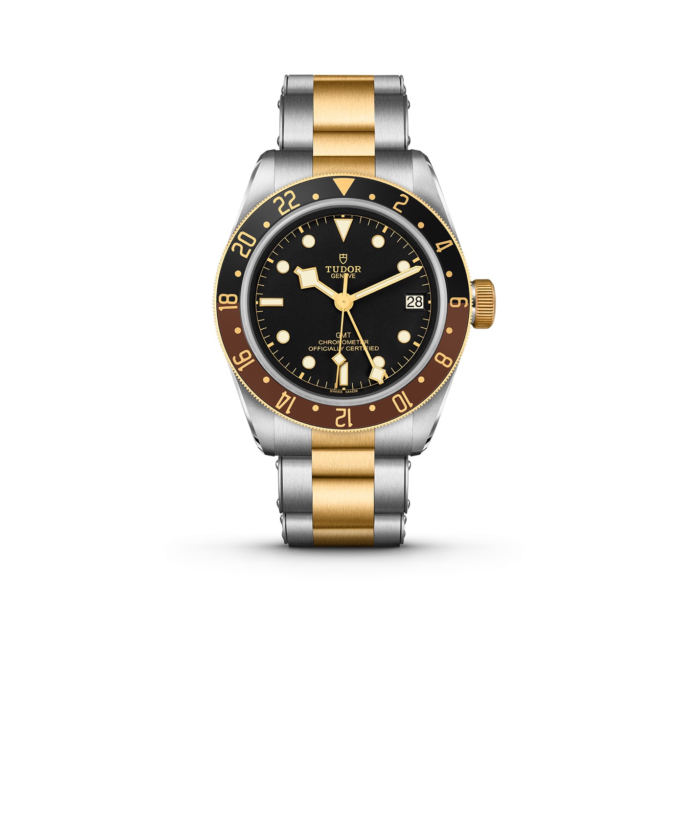 3. Tudor Black Bay GMT S&G – Montre bicolore en or jaune et acier satiné – boîtier de 41 mm – Cadran noir bombé et lunette tournante bidirectionnelle. Elle est équipée d’un calibre manufacture certifié COSC avec réserve de marche de 70h – étanche à 200 mètres.