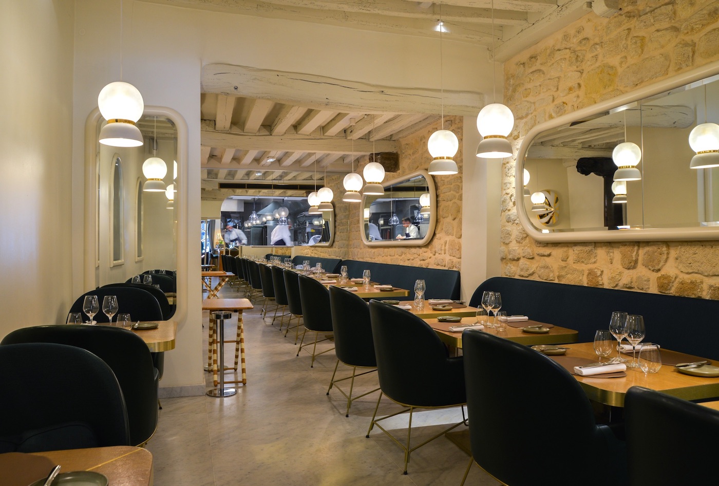 La star espagnole du design assume, au sein ce véritable pont culinaire entre Rive droite et Rive gauche, une fantaisie et un environnement visuel retro-moderne voluptueux apte à accompagner toute l’audace de cette table d’exception étoilée au Michelin. Il ne pouvait donc pas y avoir de demeure plus accueillante que celle-ci pour qu’Alain Pégouret décide d’y accrocher son tablier !