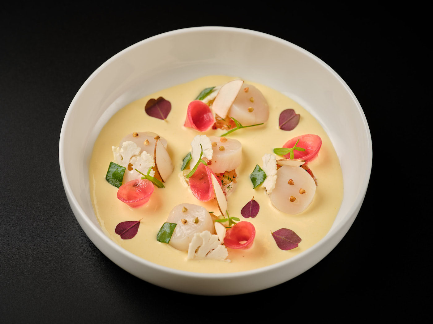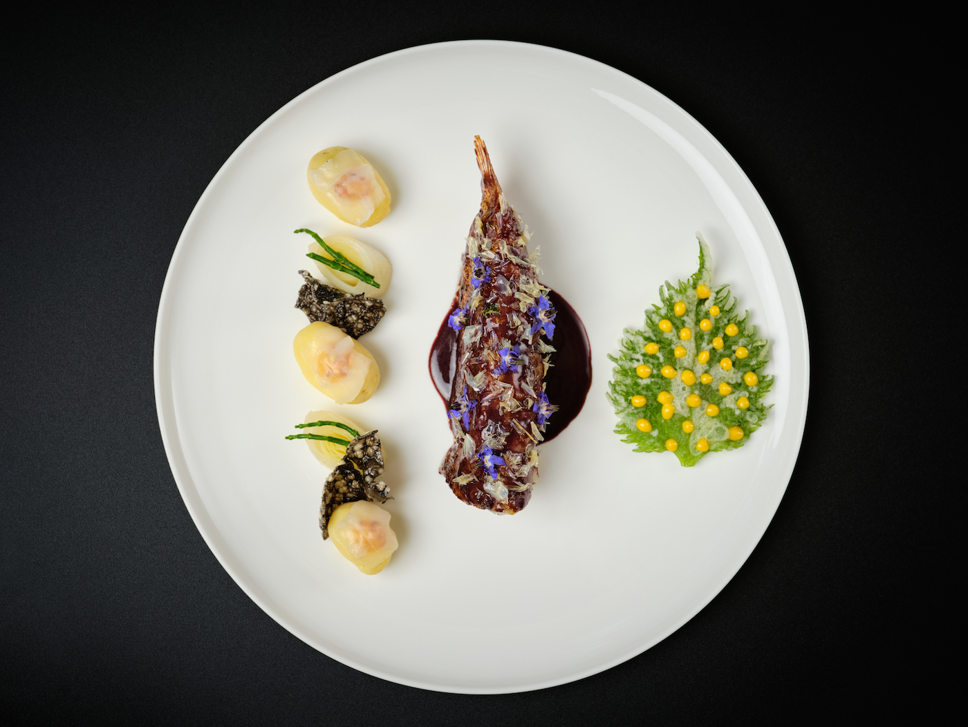 A l’image de la mise en bouche séduisante envisagée avec des rillettes de maquereau moutardé. En guise d’amuse-bouche, le gourmand couscous revisité, sous tuile de semoule confirme que « la passion gastronomique » est ici un mantra. Au subtil Menu Instant de Saison (158 euros / personne avec accord mets et vins) est proposée une carte inventive en cinq plats qui incite à l’évasion dans une expérience culinaire de haute volée. Les langoustines mi- cuites, petits pois en velouté glacé, panna cotta à la citronnelle et perlines de lulo ouvrent le champ dans un pur moment de plaisir et de légèreté.