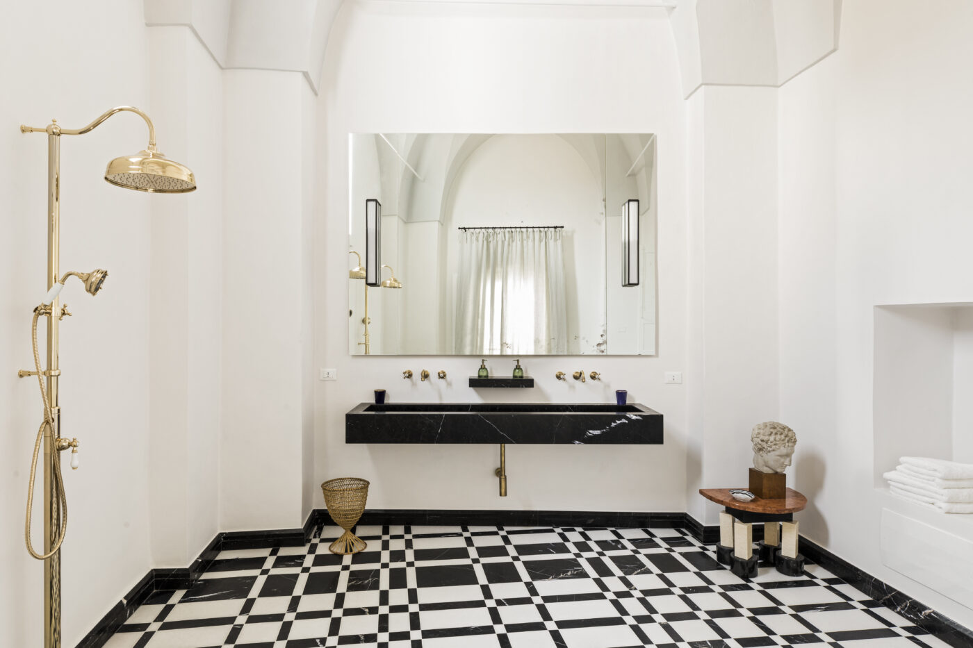 Dernier né de la collection de palais de Guy Martin, le palazzo Matteo a été conçu et aménagé en six suites, dans un lieu d’exception classé au patrimoine national. Sur 1000 m², les photographie de Giacomelli, Ghirri, Pietzsch côtoient les signatures de Verlaine, Cocteau, Picasso, sans oublier les peintres du XVIIe siècle tels Francesco Albani, Giacomo del Po , Anthonius van Dyck, Andrea Vaccaro… Le mobilier n’est pas en reste, signé Alvar Alto, Le Corbusier, Ponti, Ico Parisi, Jan Bocan, Paolo Buffa, Ettore Sottsass, Minotti avec des tissus d’origine Marelli, Maison Jansen Caccia Dominioni ainsi que des lampes des années 1970 de Albert Tormos. Les tissus de grands éditeurs choisis par Katherina Marx soulignent la beauté des lieux tandis que les salles de bains spacieuses appellent à la détente.