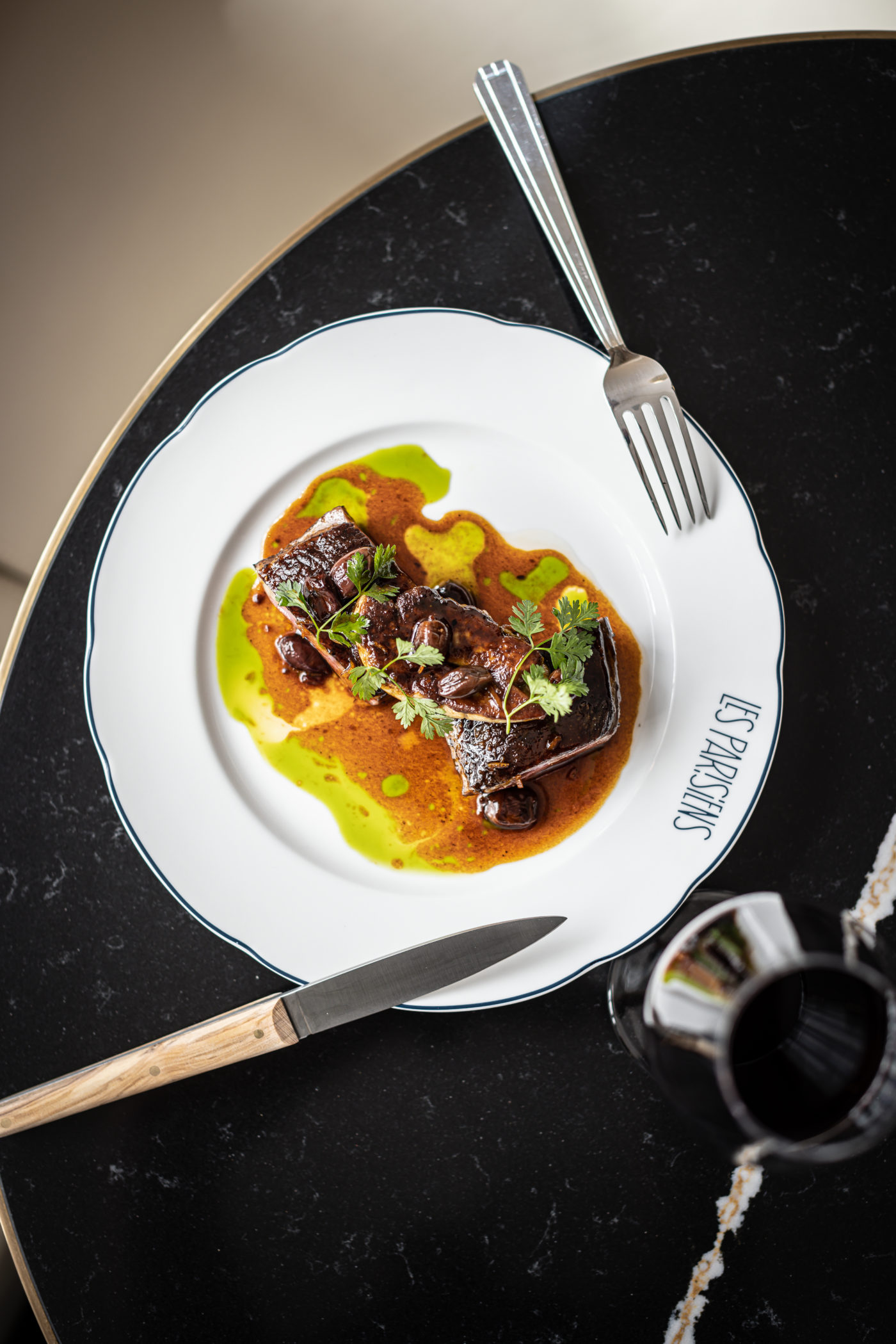 À l’angle de l’hôtel Pavillon Faubourg Saint-Germain, nouveau cinq étoiles de la rive gauche, le chef Thibault Sombardier (Mensae, Sellae) dresse sa table Les Parisiens, néo-bistrot reflétant l’élégance historique de Saint-Germain-des-Prés et l’âme traditionnelle des brasseries de quartier.