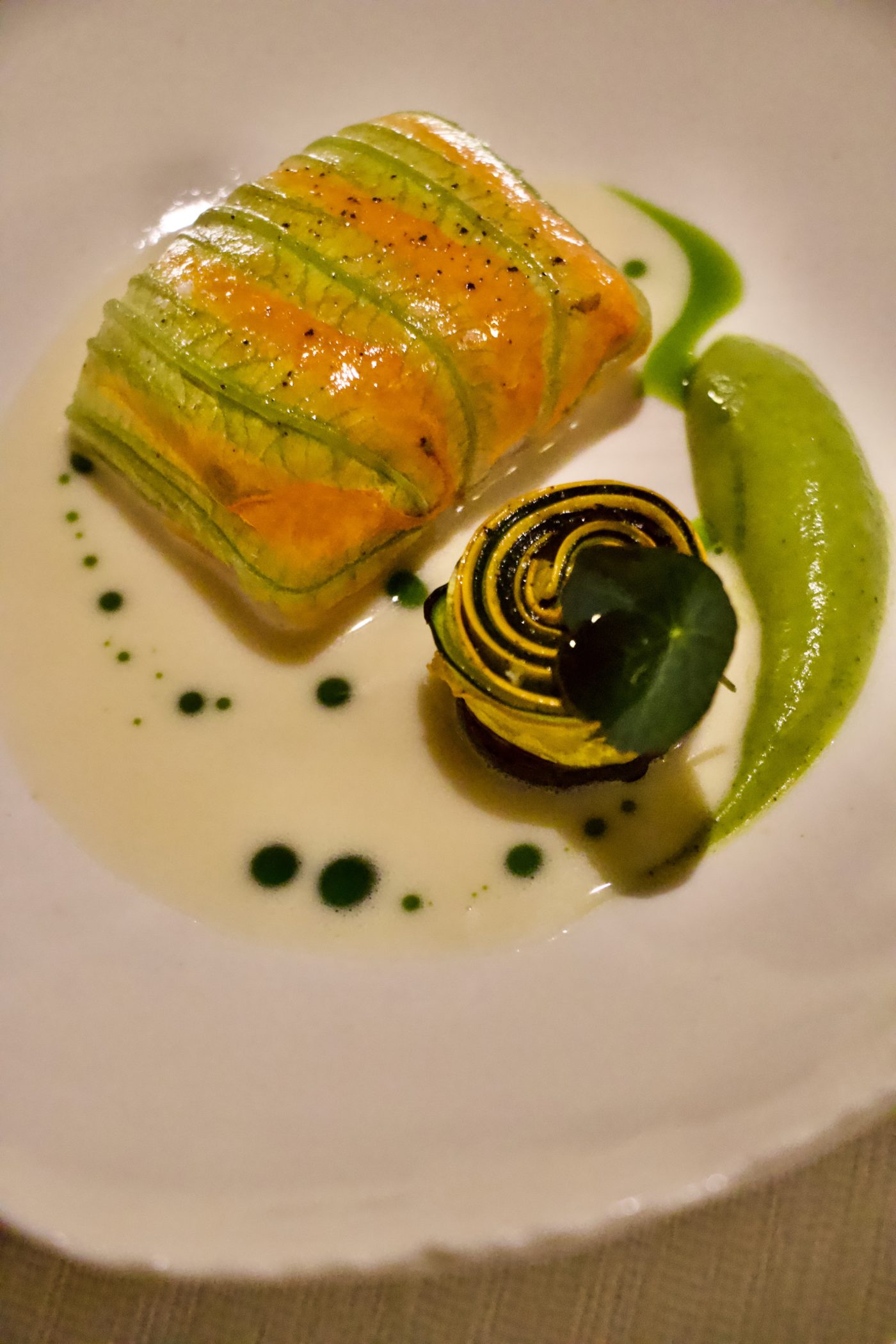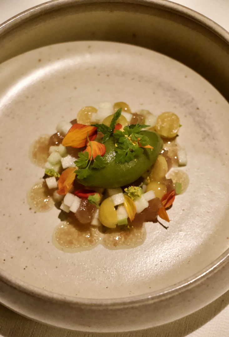 La table du chef Nicolas Masse, La Grand’Vigne **, est un chapitre à part entière dans l’histoire des Sources de Caudalie. Avec l’aide de son chef sommelier Aurélien Farrouil, il réalise des partitions locales, autour du raisin et du jardin, révélant ainsi la nature la plus herbacée, la plus fruitée et la plus florale d’un produit du terroir. Par amour de la région, le poisson a aussi son importance à la carte. Le menu dégustation s’intitule « Voyage en Terre de vignes », un nom évocateur : le restaurant est une aventure gastro-bachique et non moins cosmique. Ici, l’art viticole rend compte de son potentiel inavoué, de l’expression du fruit sous toutes ses formes : de la cueillette à la mise en bouteille. Aucune étape du processus n’échappe au chef Masse, qui s’empare volontiers de l’acidité du verjus, de la gourmandise d’une grappe fraîchement arrachée ou d’un vin déjà vieilli, qu’il transforme en sauce.