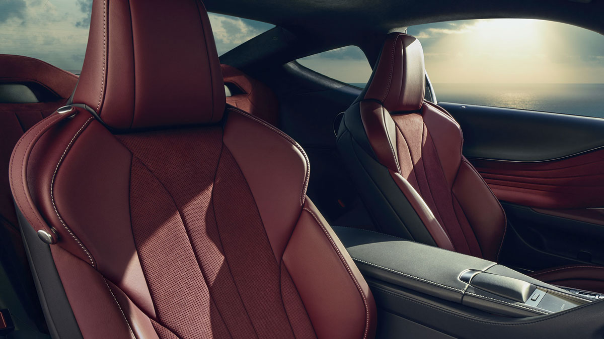 Le design intérieur du nouveau coupé est tout aussi impressionnant que ses lignes extérieures. Conformément aux lois de la physique et pour un confort optimal, les sièges sont bas et proches du centre de gravité de la voiture. Les sièges en cuir aux finitions sublimes assurent également un équilibre parfait entre confort et maintien : Koji Santo, ingénieur en chef LC, s’est impliqué corps et âme dans la conception de leur nouveau design, soumis à plus d’une cinquantaine de tests. L’habitacle du véhicule vous plonge dans l’univers élégant et haut de gamme de Lexus : la position de conduite est sportive, les principales informations sont idéalement placées dans votre champ de vision et accessibles à portée de main. Focalisé sur le conducteur, la planche de bord présente un combiné d’instrumentation inspiré de la LFA ainsi qu’un système multimédia et de navigation inédit. Vous pouvez également profiter du Climate concierge qui ajuste automatiquement les températures de l’habitacle grâce à des capteurs infrarouges, ou jouir d’un véritable home cinéma pour votre voiture avec le système audio Mark Levinson à 13 Hauts parleurs.