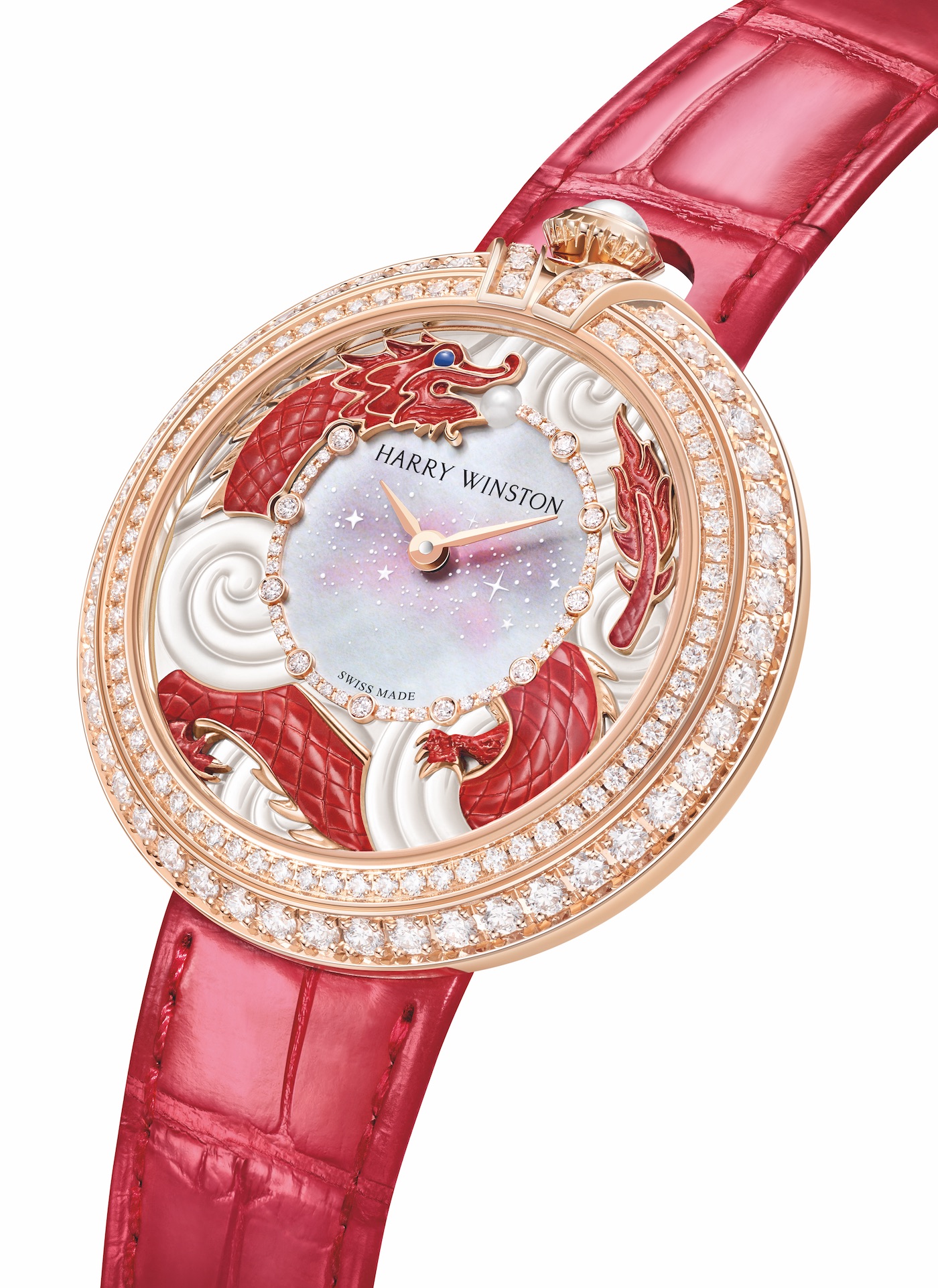 - Harry Winston – L’année du dragon – montre automatic 36 mm – en or, perle et diamants.