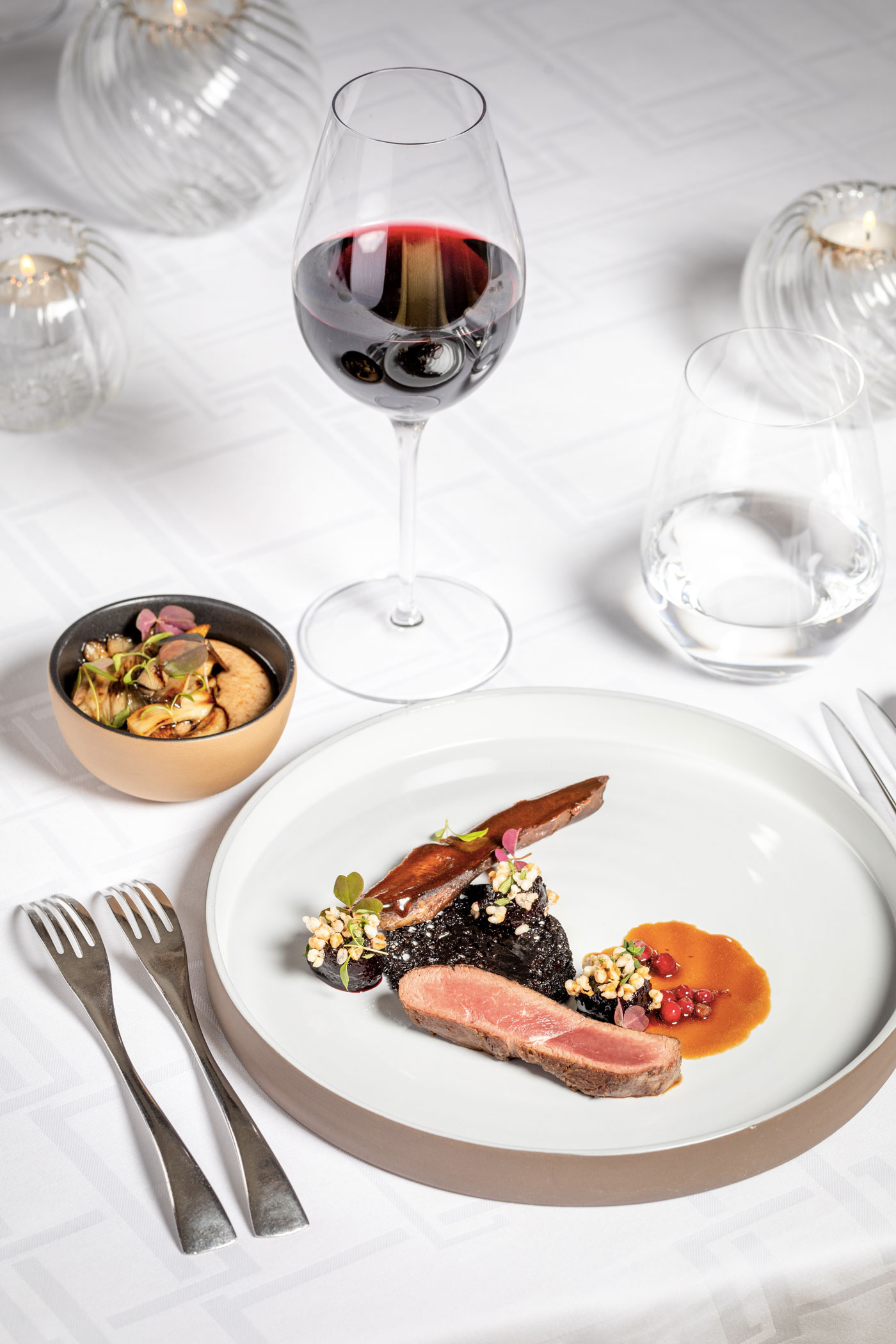 Des chambres jusqu’au Spa Le Burgundy by Sothys, en passant par le bar, le restaurant de l’hôtel, et même la Verrière et le Patio, le Burgundy se pare de ses meilleurs atouts pour vous faire vivre un véritable enchantement. Recréant une mystérieuse forêt, le patio met en lumière des boulots aux troncs blancs contrastant avec des sapins aux teintes sombres, tandis que Guillaume Goupil aux commandes du Restaurant Le Baudelaire, incorpore une ode à la gastronomie nordique à sa carte, le temps de deux séries de dîners à quatre mains. Et ces mains ne sont autres que celles de deux chefs du nord de l’Europe ! Respectivement en janvier et en mars, Christer Økland du Restaurant 1877 à Bergen en Norvège, et Tommi Tuominen du restaurant ULTIMA de Helsinki en Finlande, viendront armés de leurs secrets culinaires, pour chambouler la cuisine française de Guillaume Goupil, déja récompensée deux fois d’une étoile au Guide Michelin.