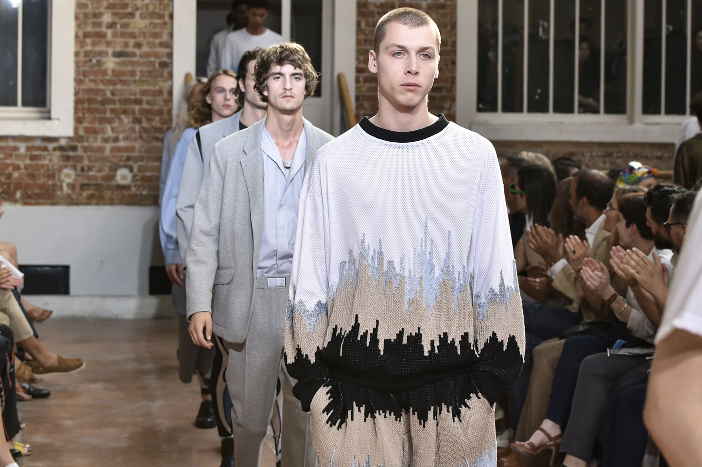 Accompagné par le Groupe Duval, son fidèle partenaire financier, le diplômé de La Cambre à Bruxelles, qui entama sa trajectoire par un stage au sein du magazine Vogue époque-Carine Roitfeld développe un vestiaire libre aux frontières du masculin et du féminin à l’image de ses sweats échancrés aux cols amovibles et de ses pantalons tailleur traités sportwear. Après de multiples collaborations avec notamment les Galeries Lafayette, La Redoute et la Maison Agnelle – qui ont soutenu très tôt cette nouvelle figure de la planète mode – ce traitement contemporain du Printemps-Eté 2019 prolonge avec brio l’intention d’avancer dans le sens d’un  « nouveau masculin » fondé sur des pièces élégantes et permanentes parfaitement structurées. A venir, une belle collaboration révélée dans quelques semaines avec une prestigieuse marque de chaussures. Autant le dire, un « save de date » de taille !