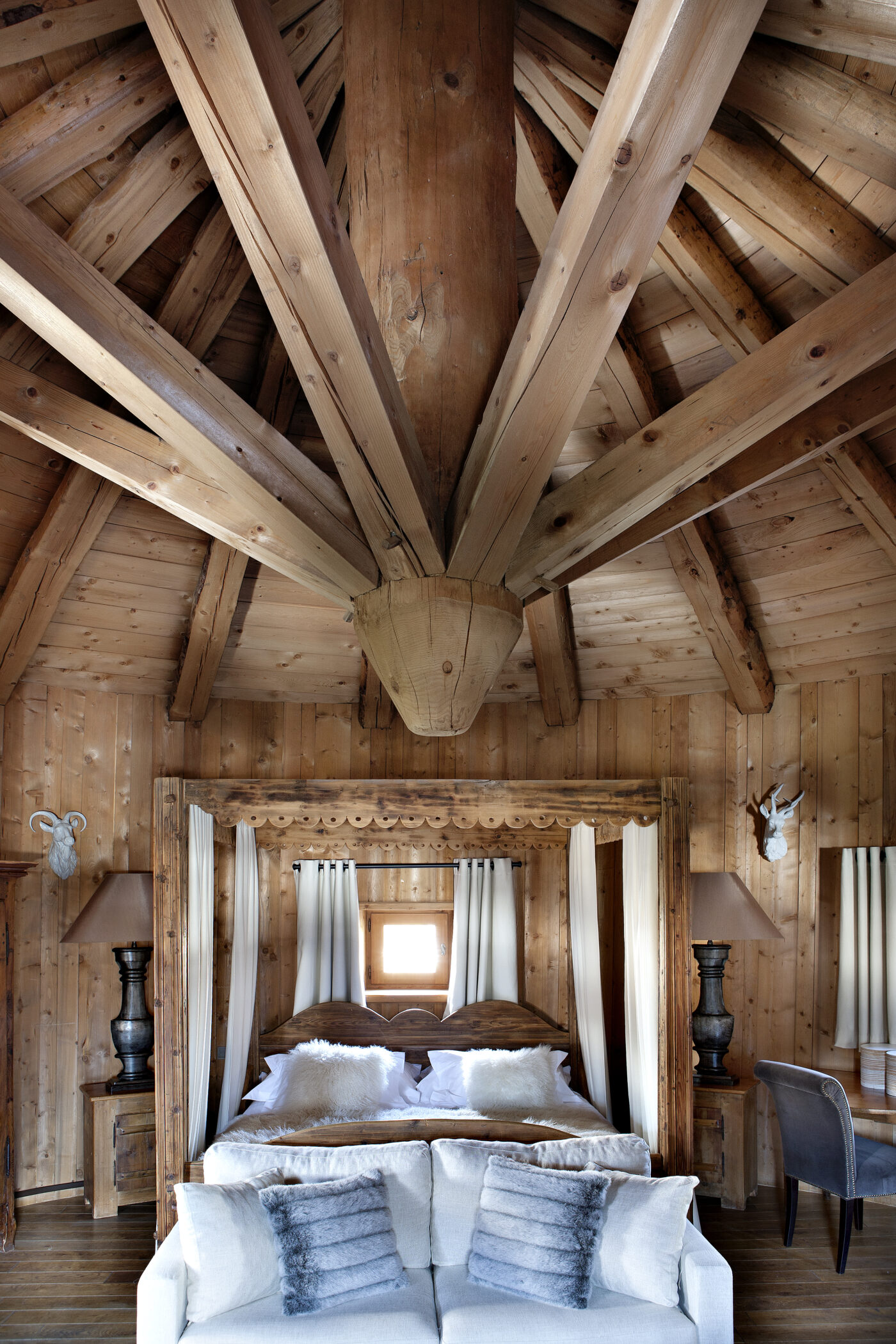 A noter que c’est ici, au Beef Lodge Restaurant, sous l’expertise avisée du chef épicurien Christophe Cote, que l’on déguste les plus belles viandes du monde (Côte d’Aubrac, Brochette Wagyu, T-Bone Shortorn maturé 5 mois…). Marie Sibuet, qui assure la relève avec son frère Nicolas nous donne quelques pistes pour mieux comprendre l’essence de cette signature familiale unique qu’elle entretient au quotidien avec passion : « Nous avons grandi à Megève et nous y vivons et travaillons depuis trois générations. Cela influence profondément notre regard et notre manière de faire de l’hôtellerie, très différente de celle d’acteurs purement financiers ou extérieurs au territoire. Nous portons une vision familiale et traditionnelle de l’hospitalité, qui devient aujourd’hui assez rare dans le paysage alpin. Nous concevons nos lieux nous-mêmes, sans suivre les cabinets de tendances ni les effets de mode. Cette liberté nous permet de créer des maisons intemporelles, avec du caractère, une âme, une vraie identité, loin des standards interchangeables.» La première nuitée sereine, loin du tumulte parisien, face à l’hypnotique Jaillet sera l’occasion de savourer ces quelques éléments de réponse sur l’ADN si caractérisque des Sibuet dans ce décor enveloppant alliant l’architecture du lodge africain et un plaisant esprit trappeur contemporain.